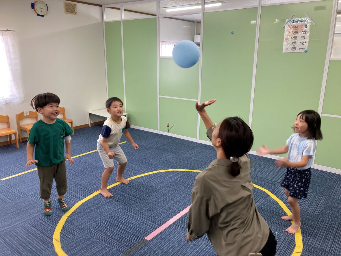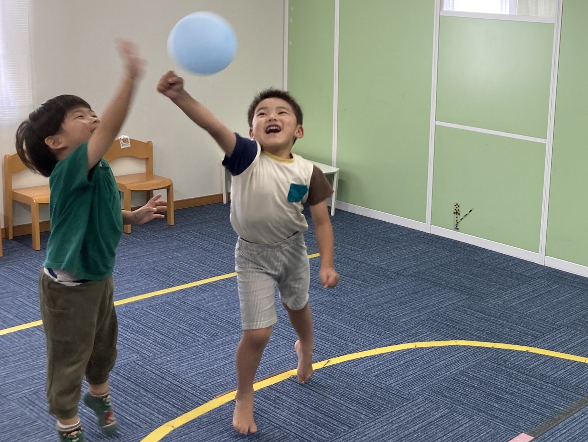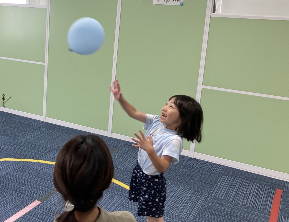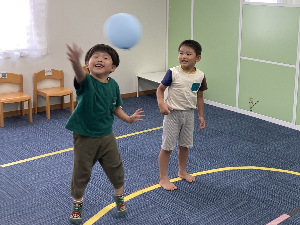 2024年07月17日(水) スタッフブログ 風船バレーボールにチャレンジしました! 今日は風船バレーボールを楽しみました。風船だから、手は痛くありませんが、普通のボールよりも不思議な?変化をするので、追いかけるのも大変!!!でも、すぐに慣れて、とても上手になりましたよ。 先生も入って、二人チームで対戦しました 思った通りには、飛んでくれません 風船を良く見て・・・ チームワークも大切です