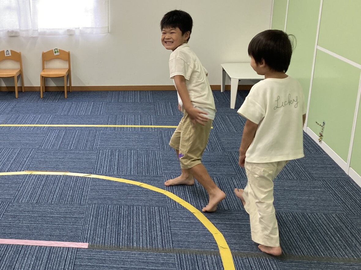 2024年07月18日(木) スタッフブログ 音楽に合わせて、体を動かしました(リトミック) 今日はリトミック!音楽にあわせて、歩くスピードを変化させたり、動物の動きをまねしたりして、しっかり体を動かしました。 音楽のテンポが速くなったり、遅くなったり 「カエルさん」のようにジャンプ ドングリころころ♫