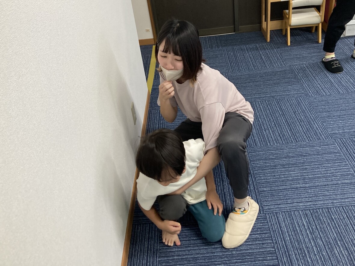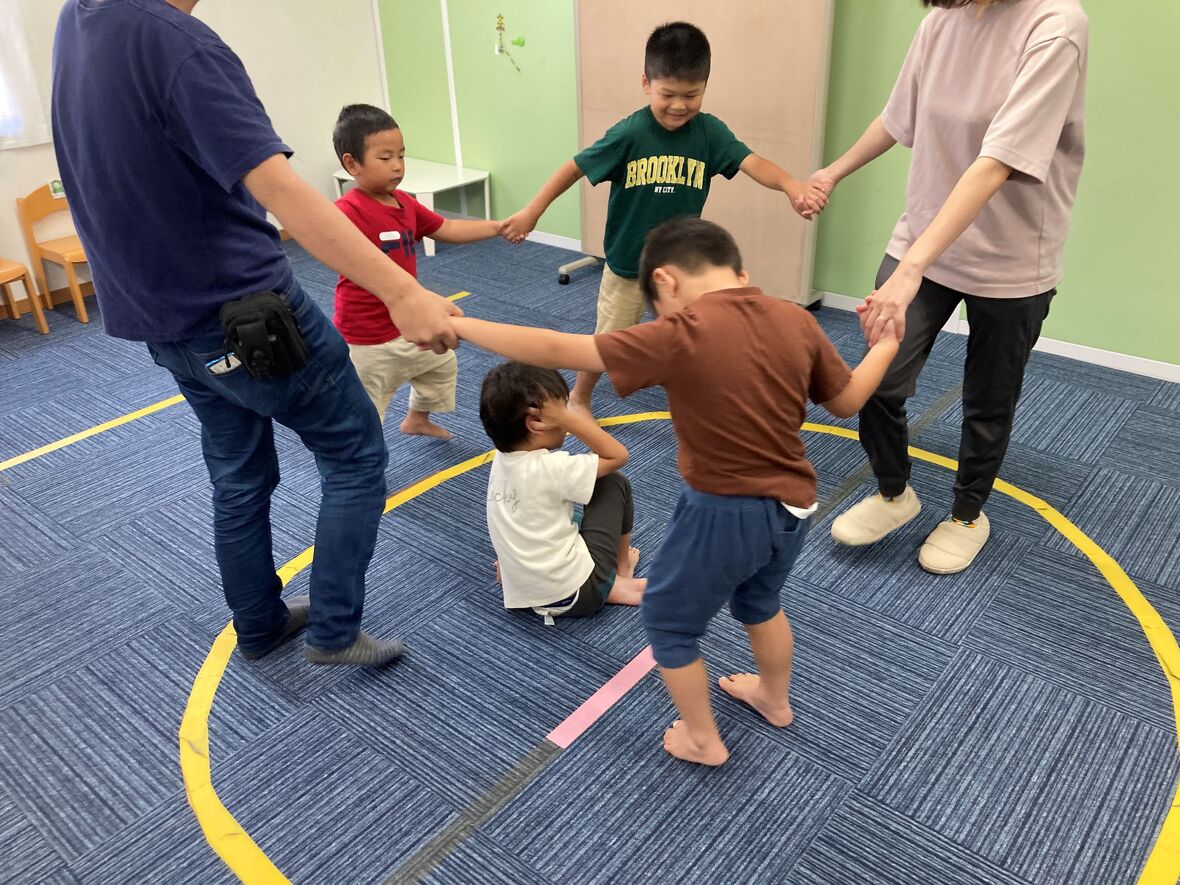 2024年07月22日(月) スタッフブログ むっくりくまさん♩ 今日の活動は「むっくりクマさん」。みんなで手を繫いで輪になって、歌を歌いながらクマさん役のお友だちの周りをぐるぐる回ります。歌の最後にみんなでクマさんを起こし、つかまらないように逃げる「伝承遊び」です!みんな楽しく活動に参加しました。 みんなで手を繫いで歩きます。 クマさんが寝てますね。みんなで起こします! 捕まらないように逃げます! 捕まっちゃいました~