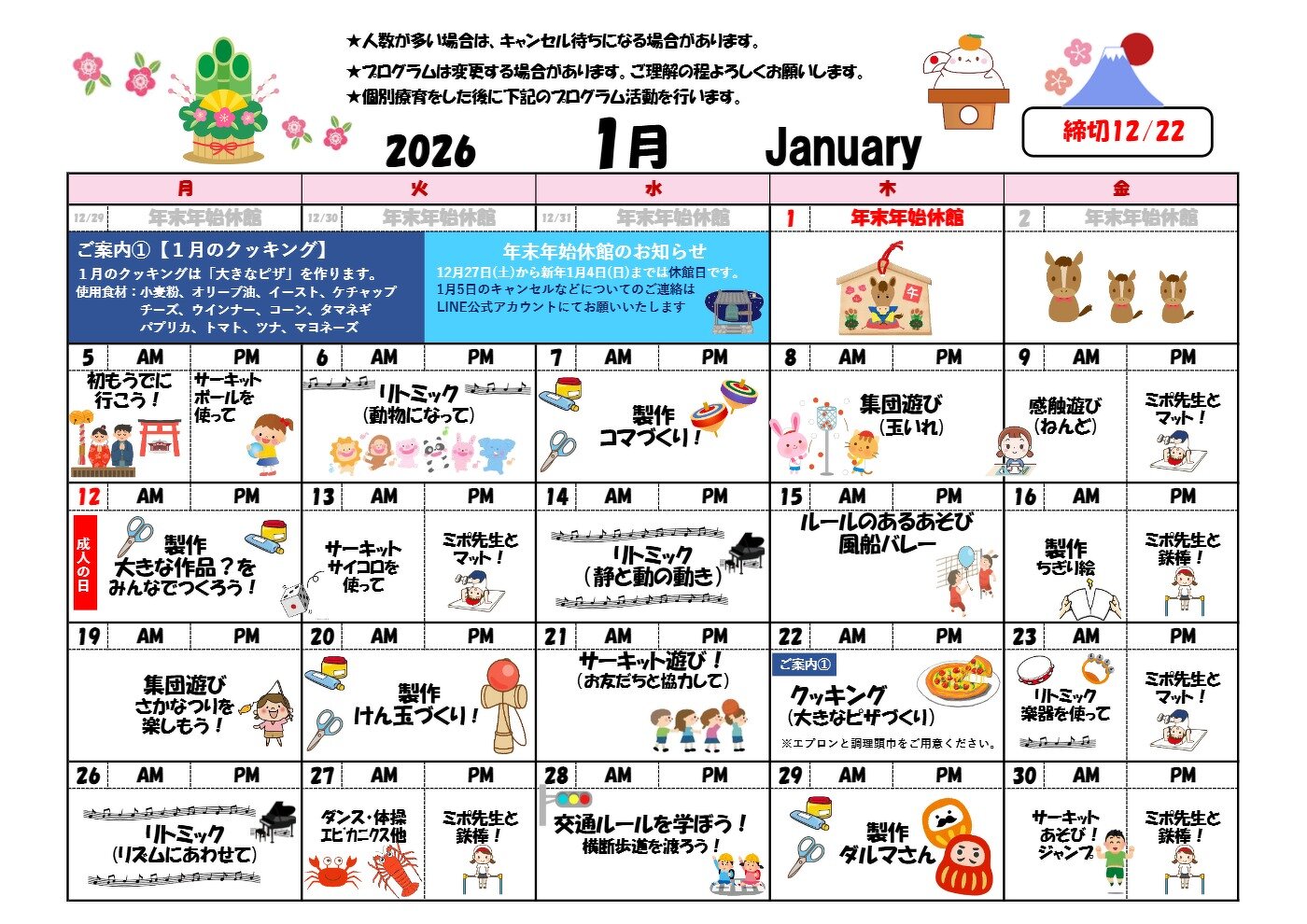 R8年1月のプログラムカレンダーを公開しました!