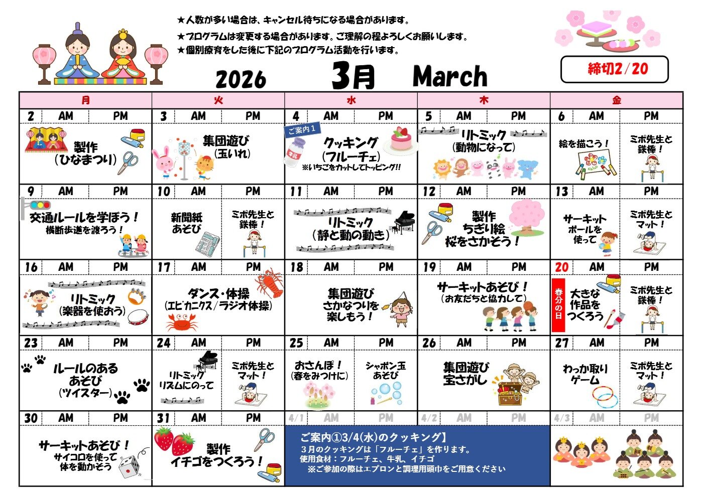 3月のプログラムカレンダーを公開しました!