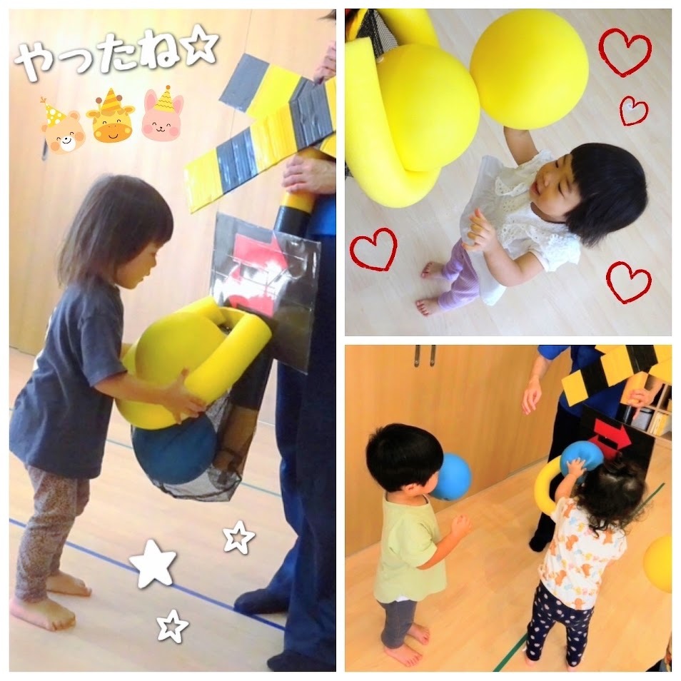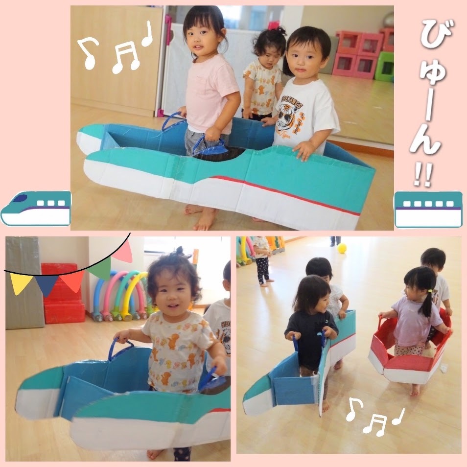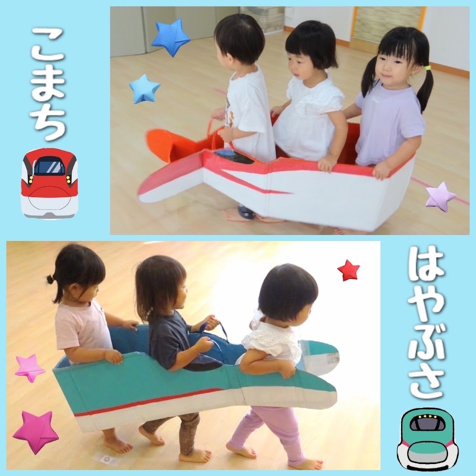 2024年10月22日(火) スタッフブログ にじぐみ/フィットネス にじぐみのフォットネスの様子です(^o^) この日はうんどう会の親子競技で使った 新幹線と踏切ゴールを出して身体を動かし ました!! ボールが大好きな子どもたち♪ 投げたり追いかけたりしてあそんだり、 ゴールをめがけてシュートしました(^^) 『はやぶさ』と『こまち』を見ると、子ども たちの目はキラキラ~★☆ お友だちと一緒に乗り、出発進行!! 45分間、しっかりと楽しんでいましたよ(^_^)