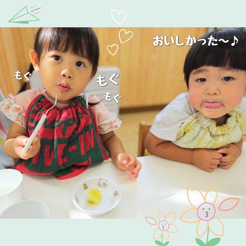 2024年10月28日(月) スタッフブログ にじぐみ/おやつの時間 にじぐみのおやつの時間の様子です(^o^) 登園から自由あそびで過ごし、9時30分頃から 朝の会→おやつの時間という流れです☆ (午後のおやつの時間は15時頃♪) この日のおやつはキウイでした(^^) りんごやバナナのほかに市販のお菓子など 日によって提供するものは異なります♫ 楽しいおやつの時間でした~(^_^)