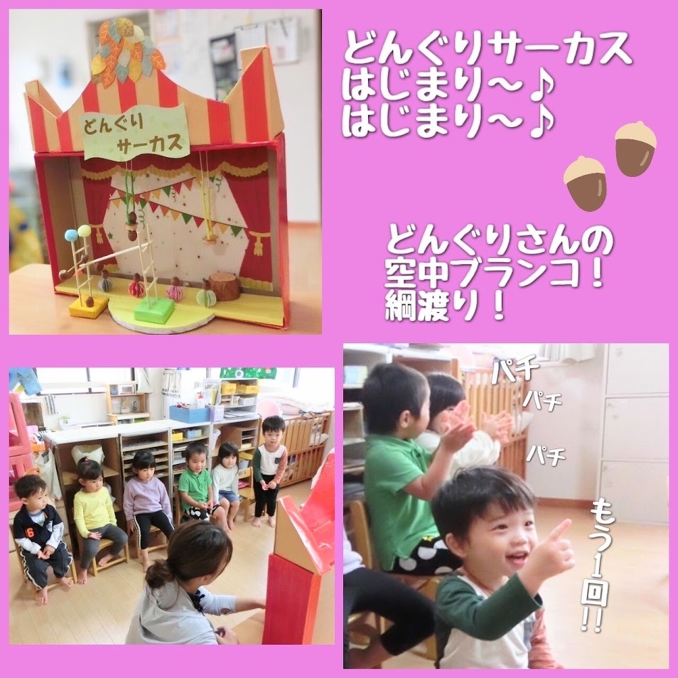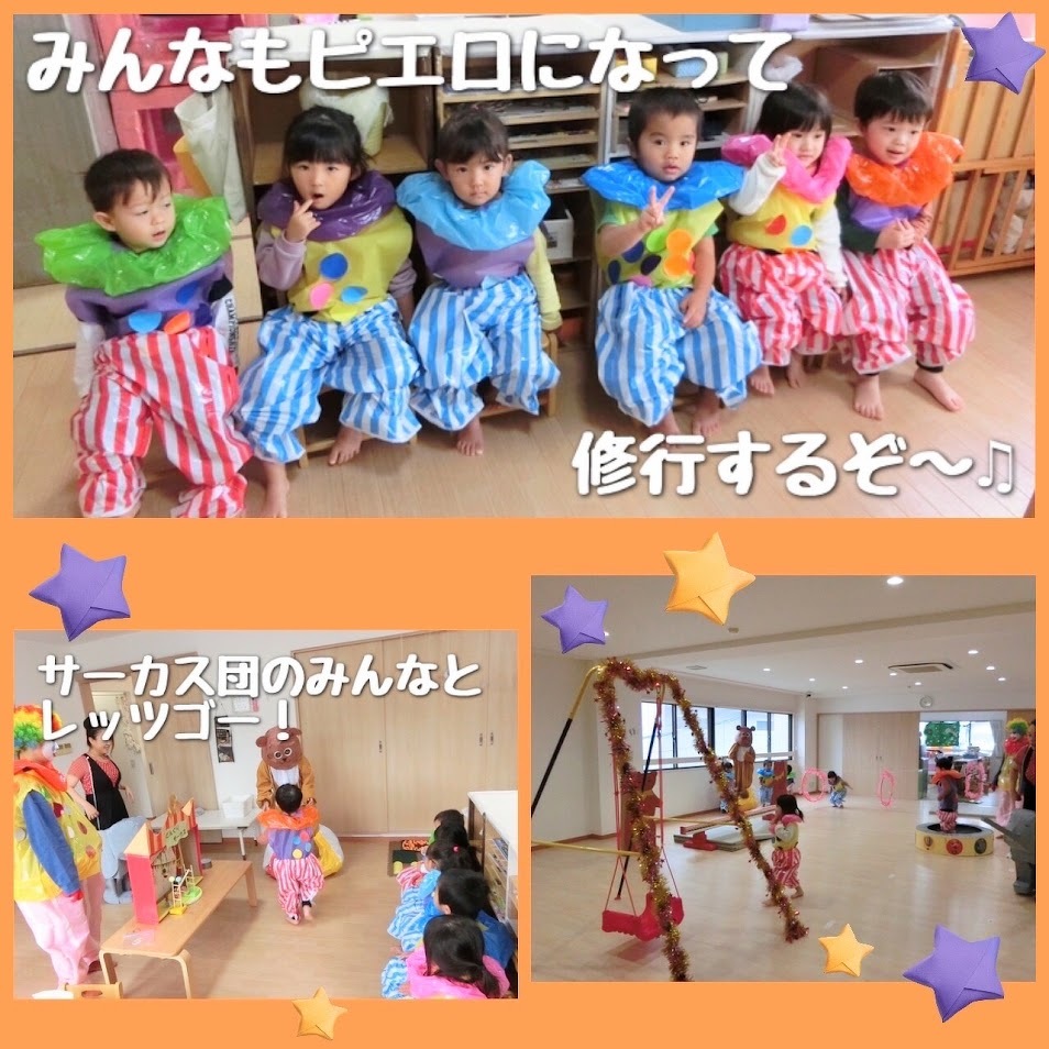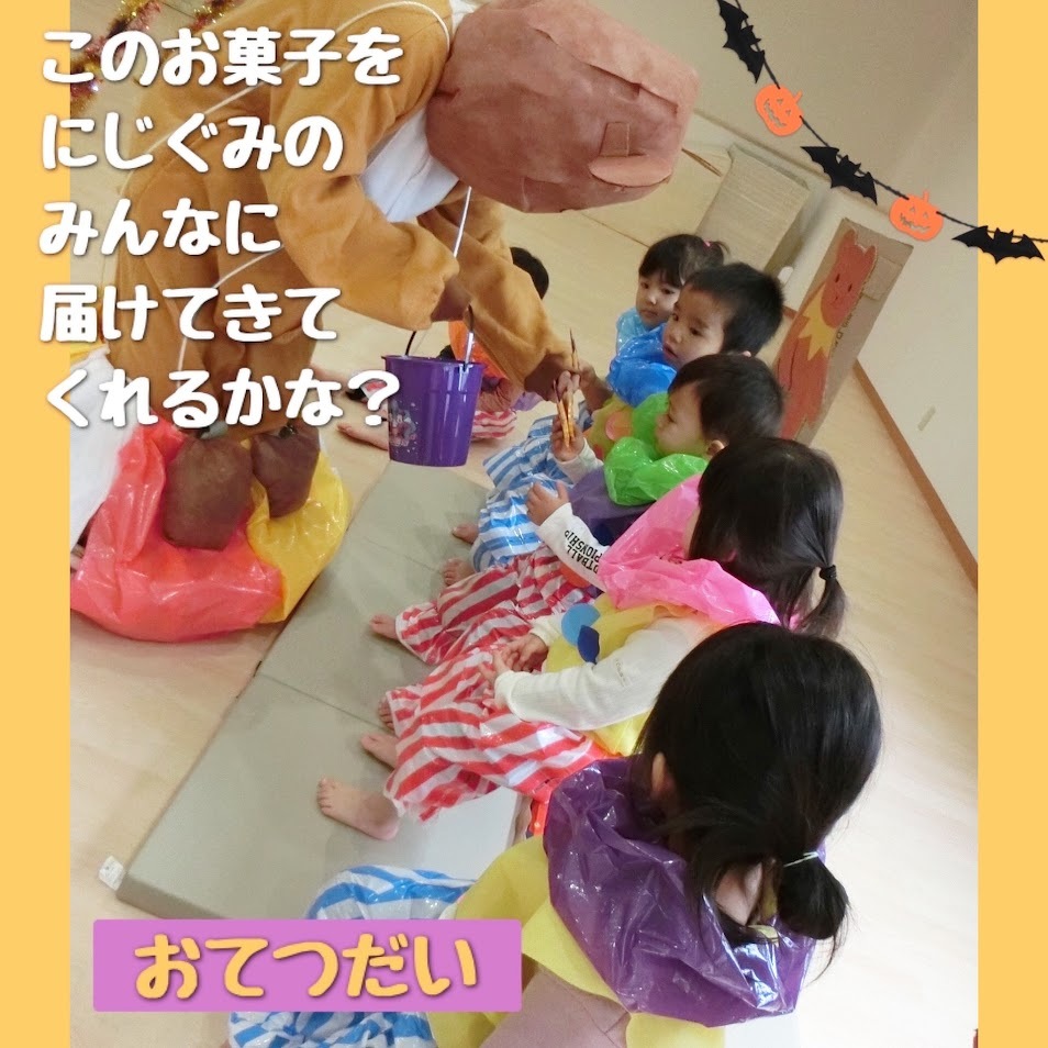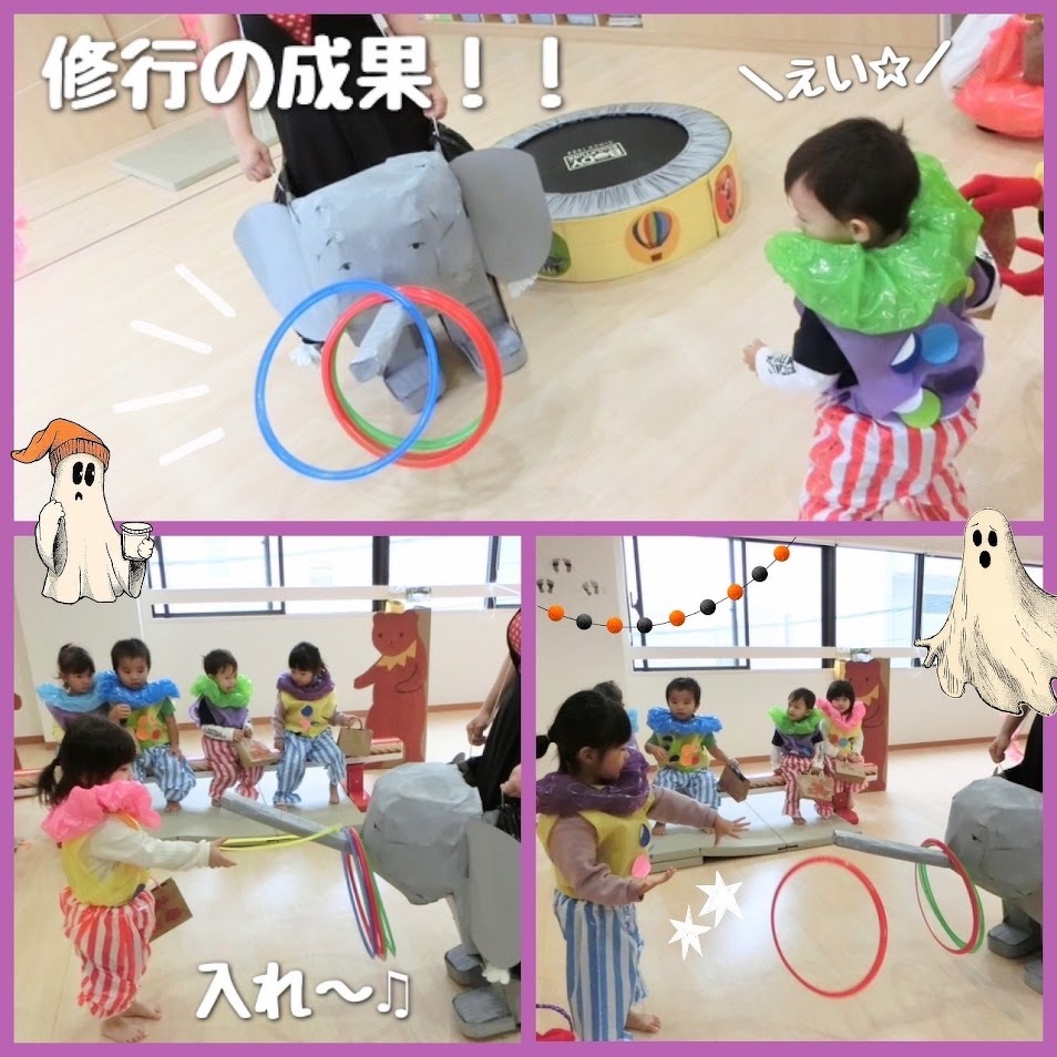 2024年11月05日(火) スタッフブログ おひさまぐみ/ハロウィン おひさまぐみのハロウィンの様子です(^o^) ピエロの修行を経て、にじぐみにお菓子を 配ったり、技を披露しに行きました♪ たくさんお菓子をもらって、嬉しそうな 子どもたちでした(^^)☆