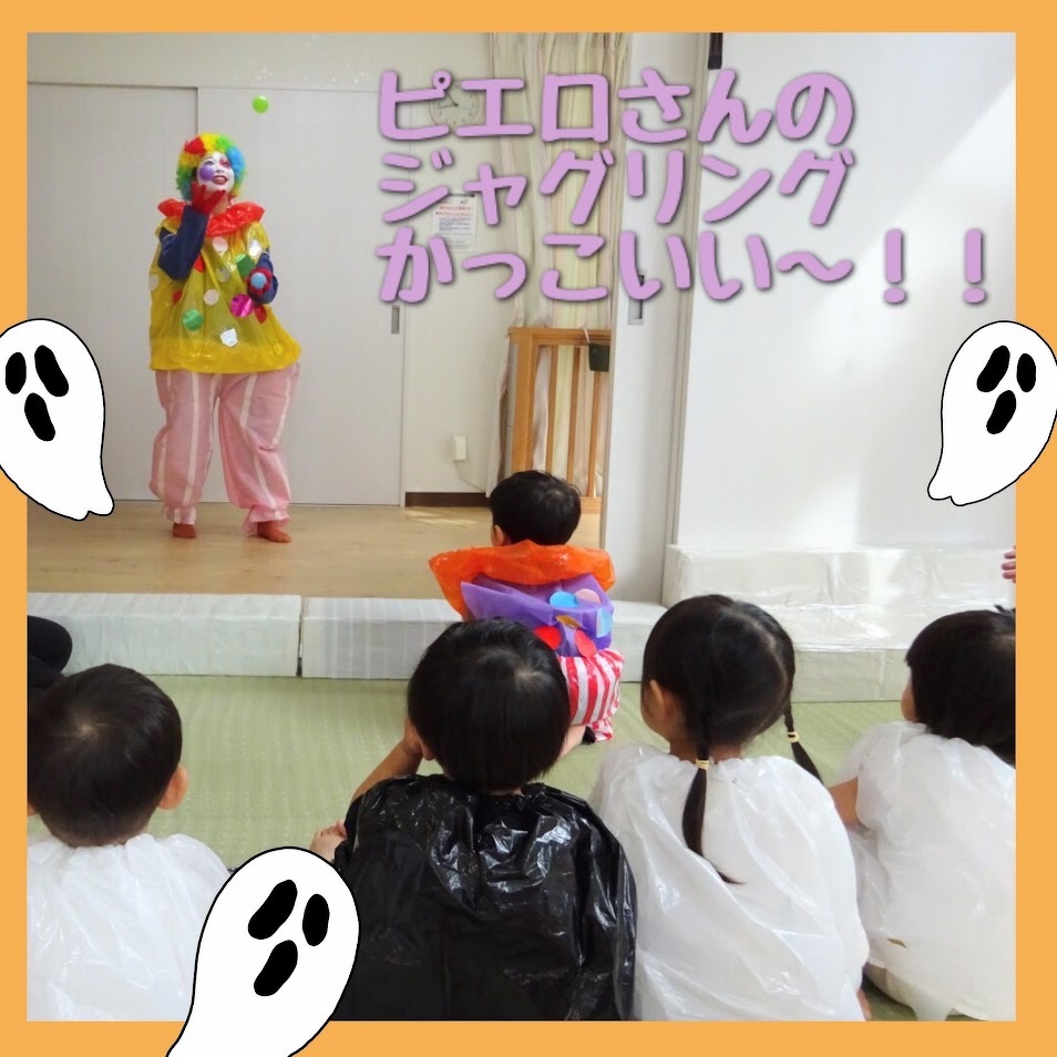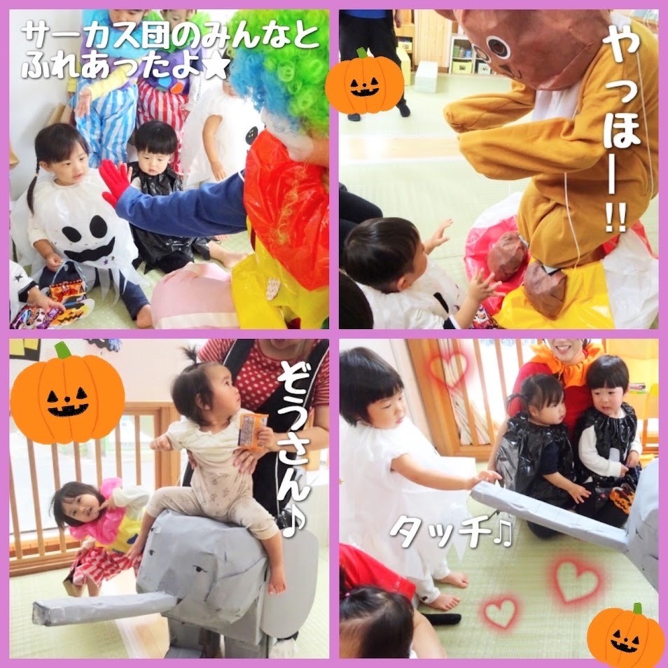 2024年11月05日(火) スタッフブログ にじぐみ/ハロウィン にじぐみのハロウィンの様子です(^o^) おひさまぐみやサーカス団のみんなとの 交流もあり、とても楽しいハロウィンと なりました☆彡 オバケ衣装が可愛いかったです♫