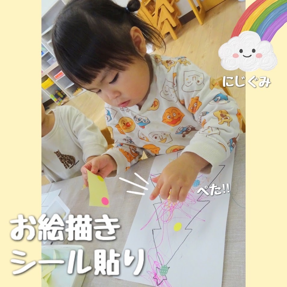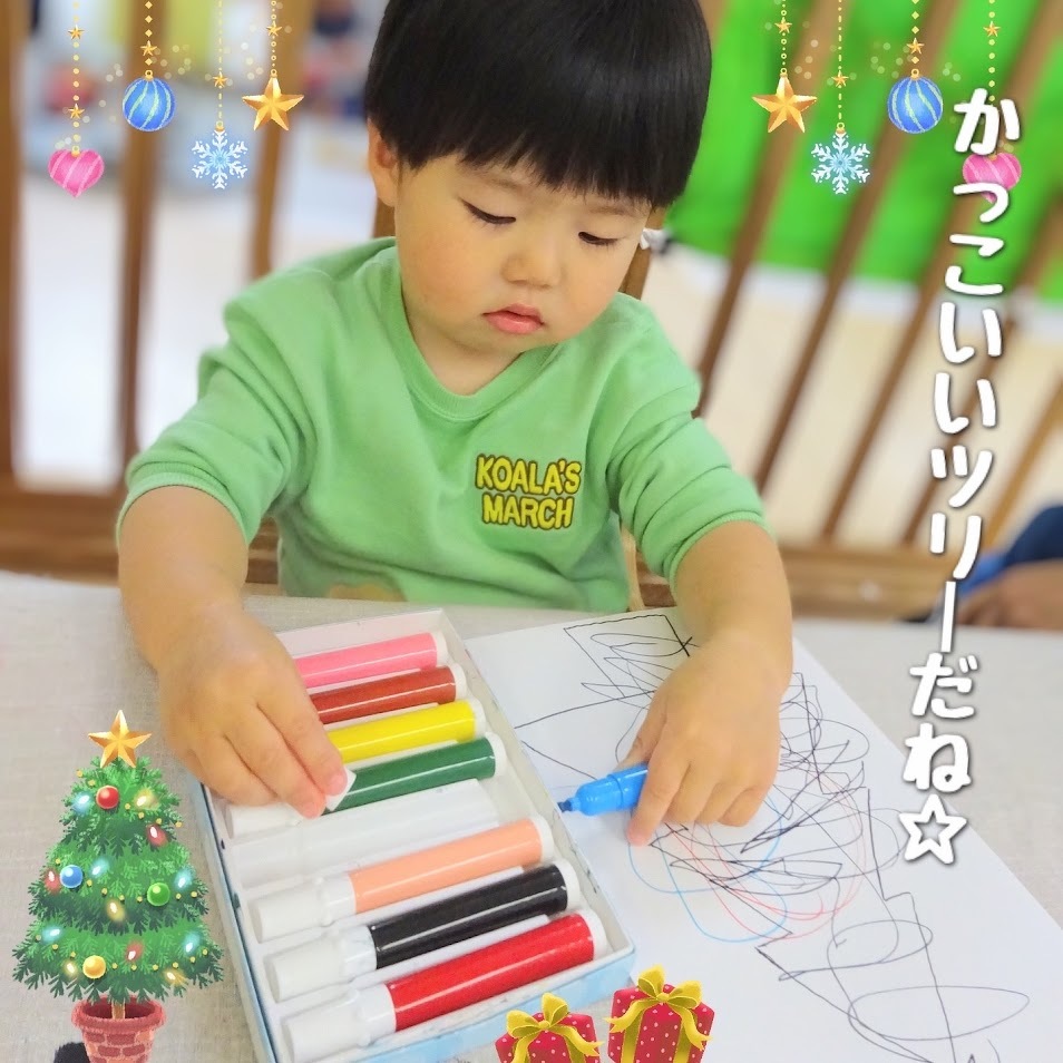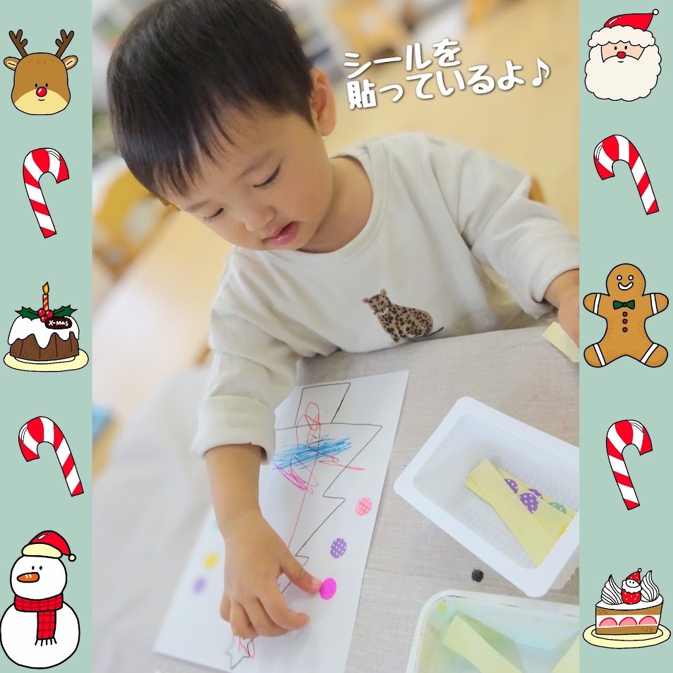 2024年12月17日(火) スタッフブログ にじぐみ/お絵描き・シール貼り にじぐみのみんなでお絵描きやシール貼りを 楽しみました(^o^) ツリーのイラストが描いてある紙や 白い画用紙に好きな色ペンでたくさんの線を 描いたりいろんな色の丸シールをペタペタっ♫ にじぐみのお部屋にもクリスマスツリーが 飾られ、一気にクリスマスムードです☆彡