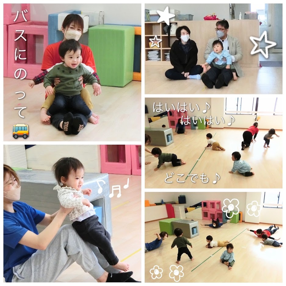 2023年03月16日(木) スタッフブログ 園開放の様子/0歳児,1歳児 3月9日(木)に行われた0歳児,1歳児の園開放の様子をご紹介します(^^) 初めての場所に最初は緊張していますが、『バスにのって』や『ピカピカブー』で少しずつ緊張がほぐれてきます♪ 後半の遊具を使う時間になると、自分の興味のあるところへ駆け寄り楽しんでいました(^o^) 園開放は月に1回行っておりますので、ご興味のある方はぜひご参加ください☆彡