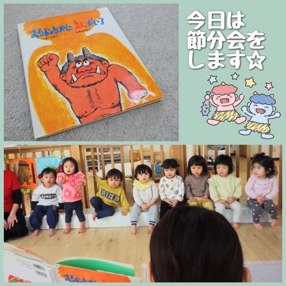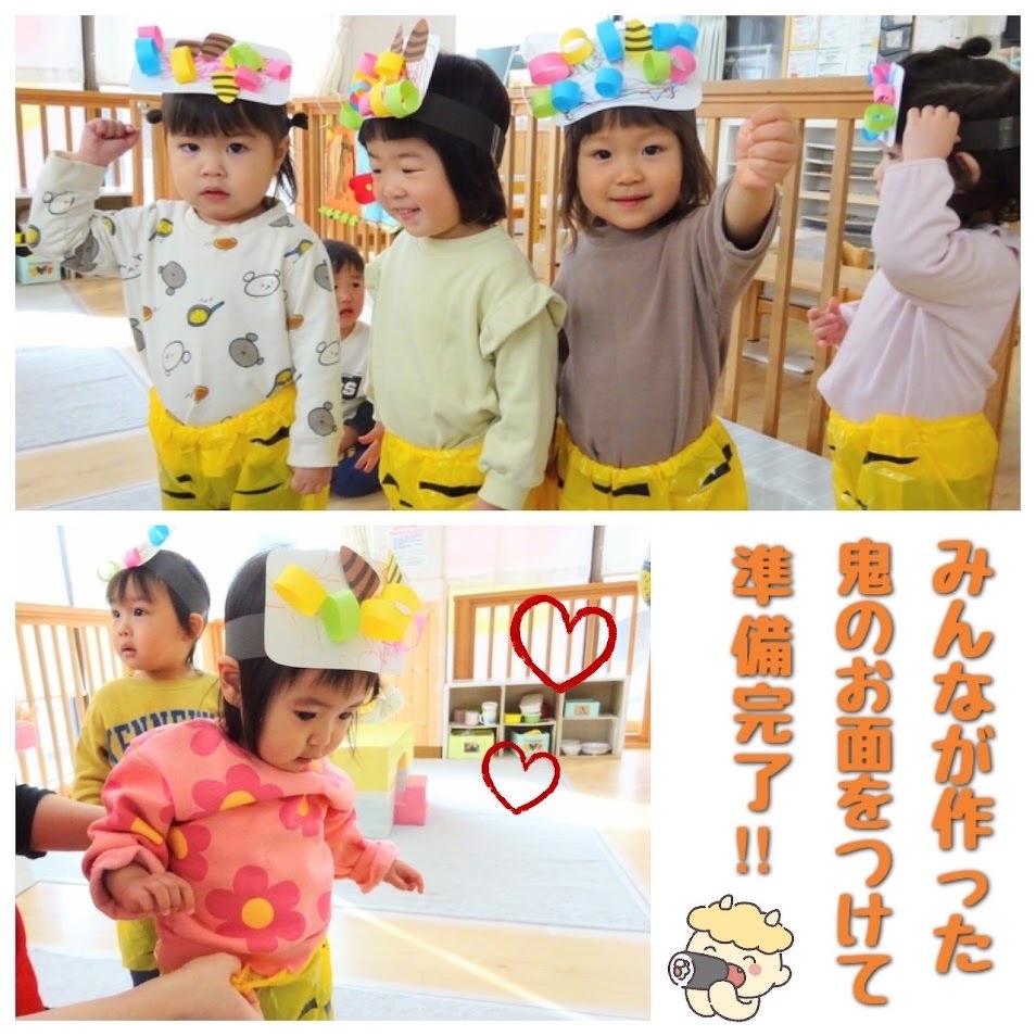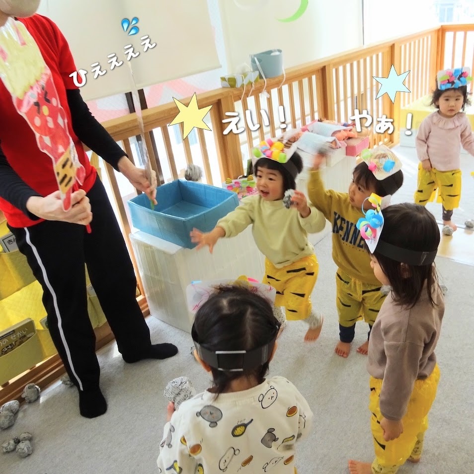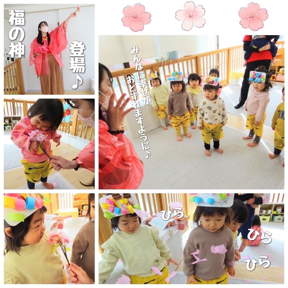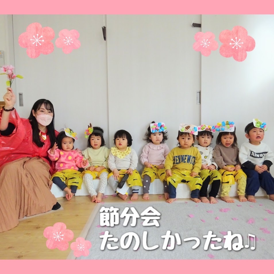 2025年02月10日(月) スタッフブログ にじぐみ/節分会 にじぐみの節分会の様子です(^o^) 子どもたちがリラックスして会に参加できる ように、歌をうたったり絵本を読んで節分会の 雰囲気づくり♫ 事前に作っていた鬼のお面をかぶり、いよいよ 鬼のイラストに向けて新聞で作った豆まき! 最初は遠慮気味に投げていましたが、時間が 経つにつれて積極的に投げていました☆ 福の神が登場し、紙吹雪や桜の花を見せて もらいみんなもニッコリ笑顔(^^)♪ 楽しい節分会でした!