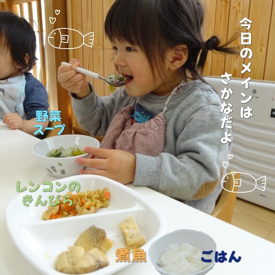 にじぐみの給食の様子です(^^) この日のメインはみんなが大好きな 煮魚でした♪ おいしそうに食べていましたよ★