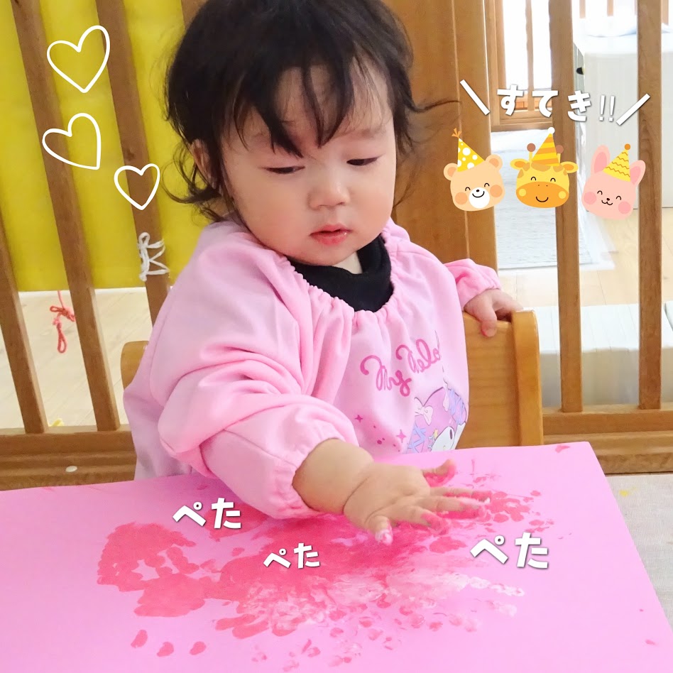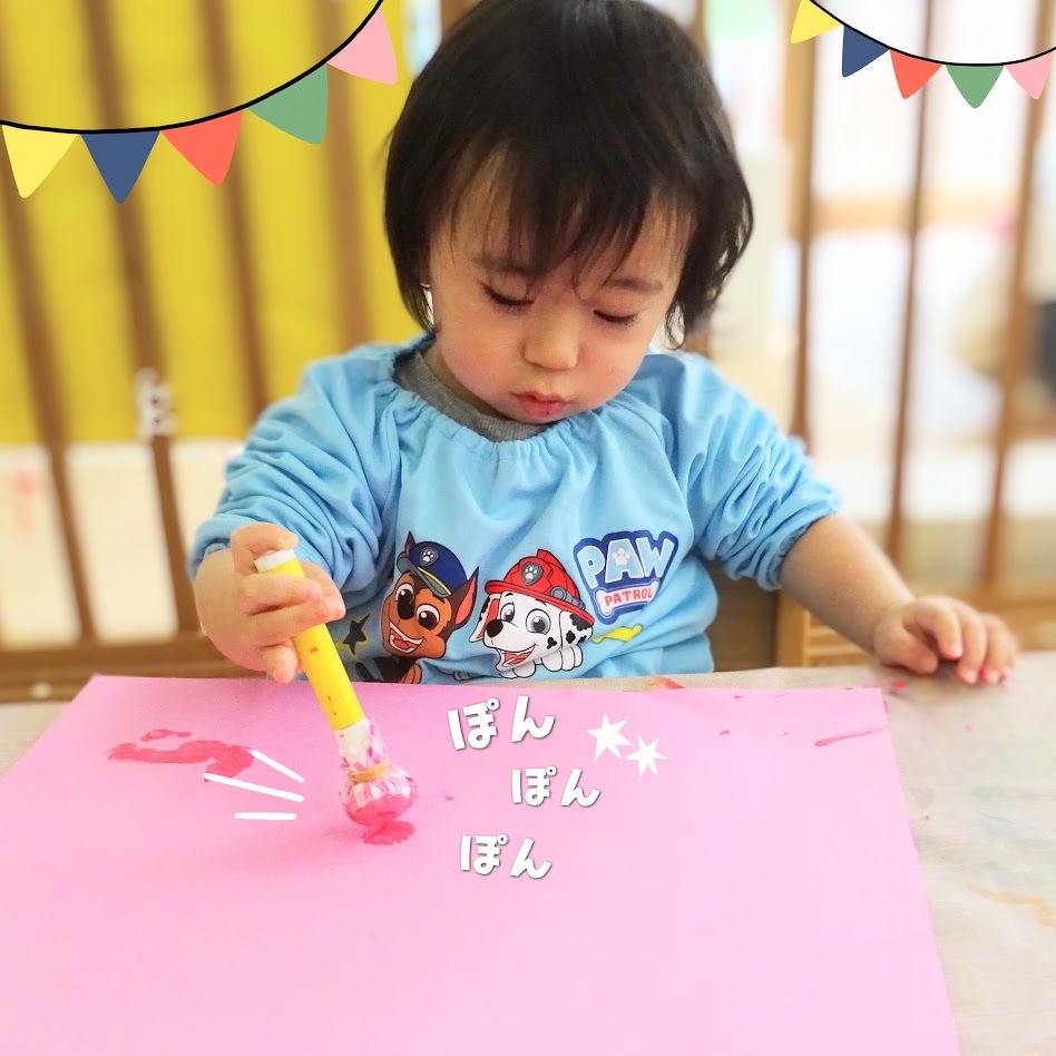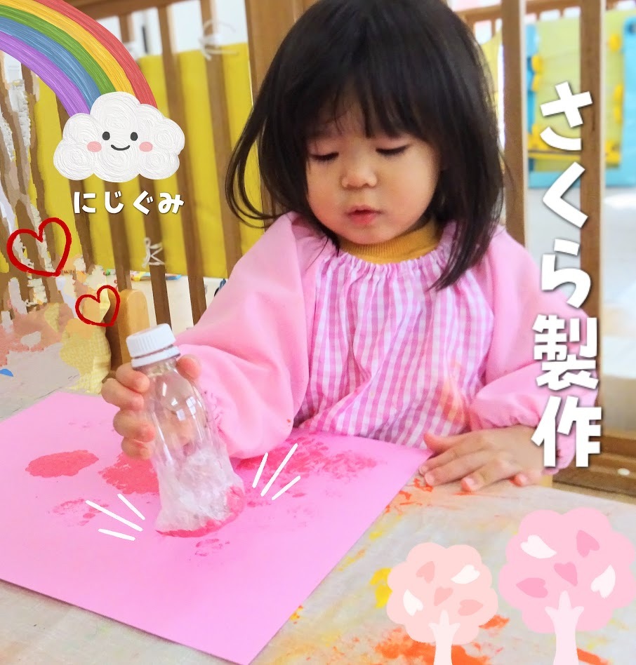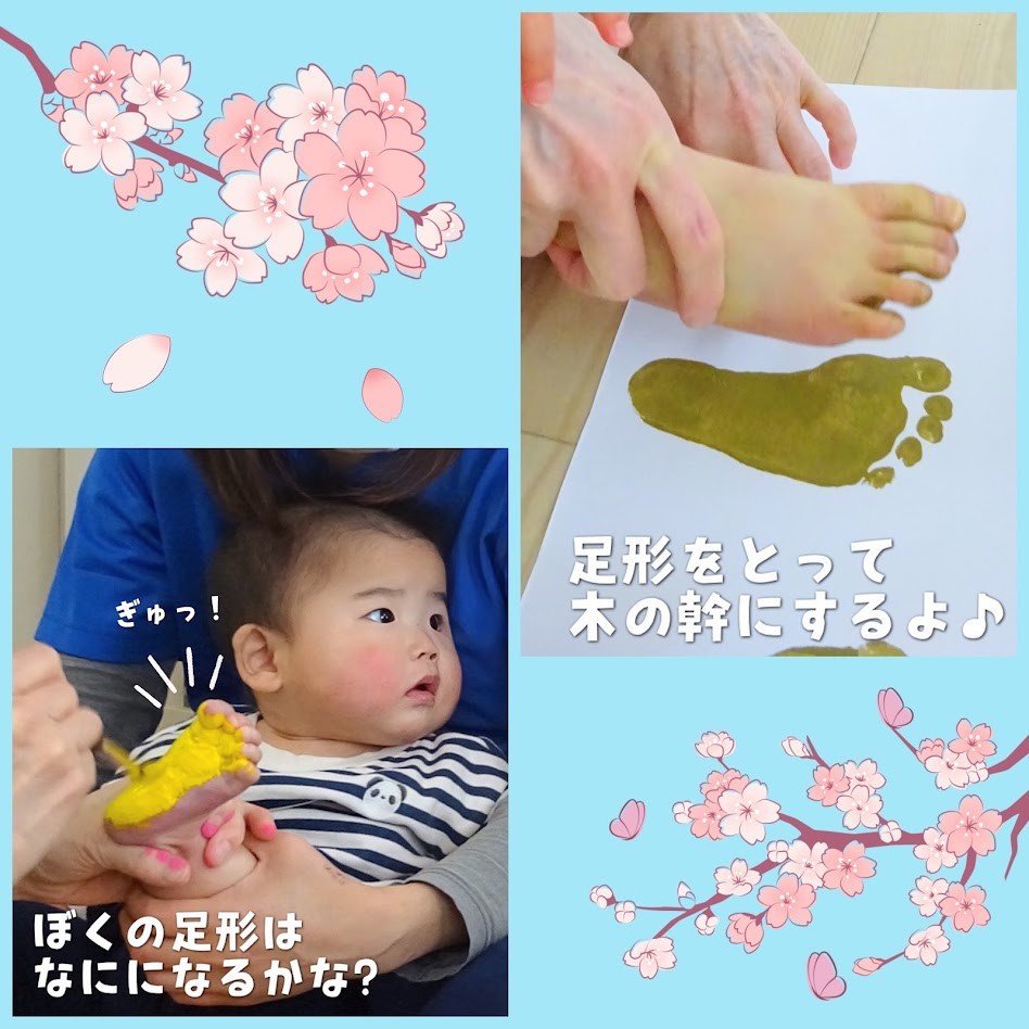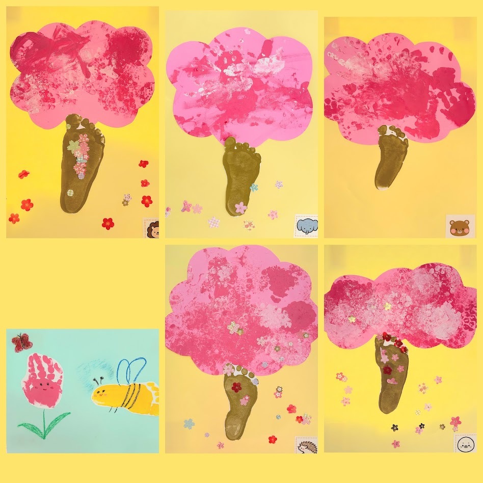 2026年03月19日(木) スタッフブログ にじぐみ/さくら製作 にじぐみで桜の木を作りました(^_^) 絵の具をプチプチやタンポにつけて 画用紙にぽんぽんと押していったり、 手で塗り広げていきました♪ 幹の部分はみんなの足形!! 綺麗な桜並木ができました(^^)☆