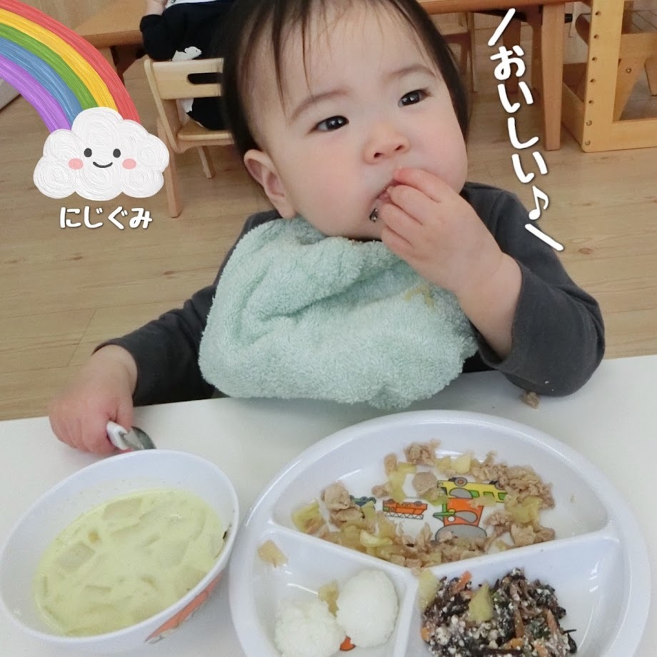 2023年04月11日(火) スタッフブログ にじぐみ/給食 にじぐみの給食の様子です(^o^) この日のメニューは ・豚肉と野菜の炒め物 ・ひじきのサラダ ・玉ねぎのカレーミルクスープ ・ごはん でした♪ みんなおいしそうに完食していました(^^)