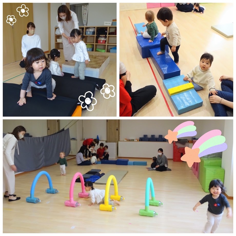 2023年04月24日(月) スタッフブログ 園開放の様子/0歳児,1歳児 4月の園開放の様子をご紹介します(^o^) 0歳児、1歳児のみんなです♫ 興味のある遊具に行き、登ったりバランスを とったり、くぐったりして体を動かします! 園開放は月に1度行っておりますので ぜひご参加ください☆彡