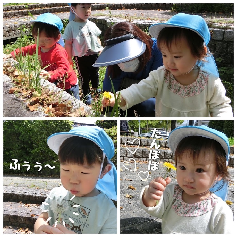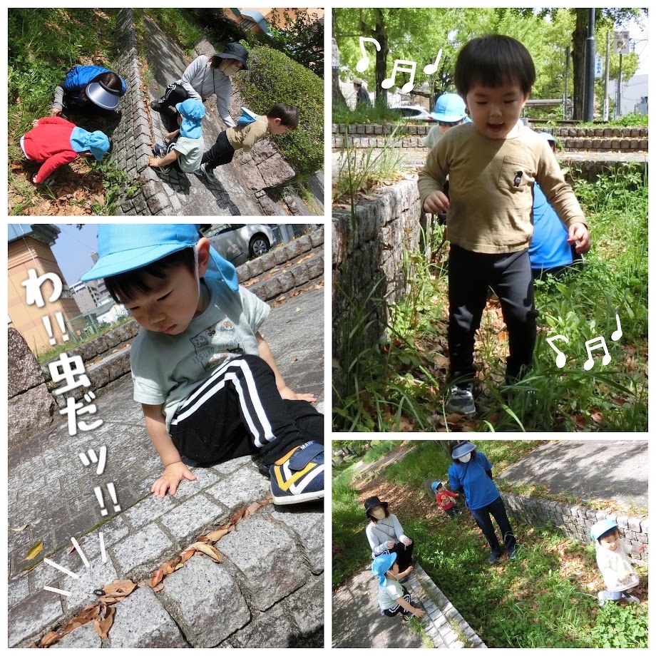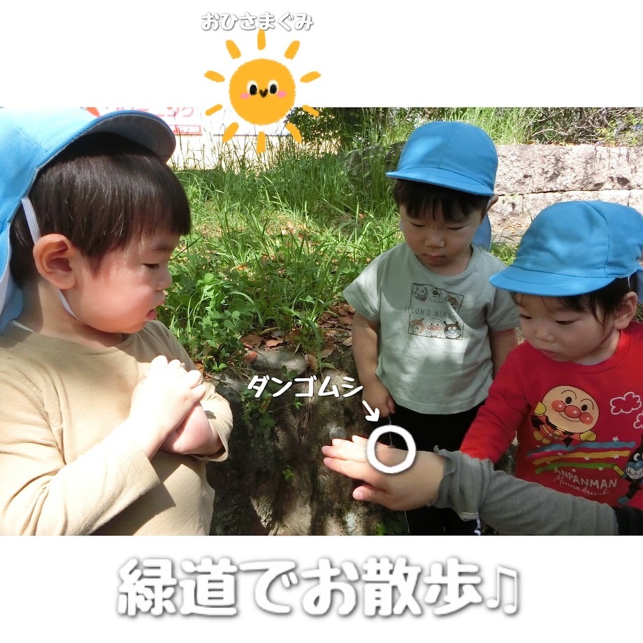 2023年04月26日(水) スタッフブログ おひさまぐみ/お散歩 おひさまぐみのみんなで緑道へお散歩に 行った時の様子をご紹介します(^o^) ダンゴムシなどの虫やたんぽぽを見つけ、春を 感じることができました♫ 緑道までの行きかえりはみんなで仲良く手を つないで歩きます(^^) とても楽しいお散歩でした☆彡