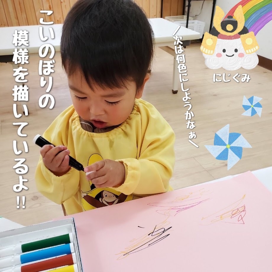 2023年04月28日(金) スタッフブログ にじぐみ/こいのぼり製作 5月のこどもの日にむけて、こいのぼりを 作りました(^o^) 色画用紙にペンで模様を描きます♫ シャシャシャとたくさんの線を描き、 とても可愛いこいのぼりが出来ました☆彡