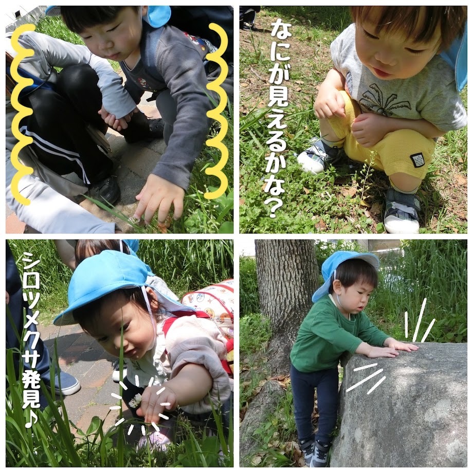 2023年05月02日(火) スタッフブログ おひさまぐみ・にじぐみ合同/春の遠足 先日、今年度初めてとなる行事『春の遠足』へ おひさまぐみとにじぐみのみんなで行って きました(^o^) 緑道で春の植物に触れたり、虫を探したりして みんな散策に夢中!! お昼は給食先生が作ってくれたお弁当♫ お外で食べるお弁当の味は格別ですよね☆彡 楽しい思い出がまた1つ増えました(^^) 保護者のみなさま、お弁当箱のご準備 ありがとうございました!
