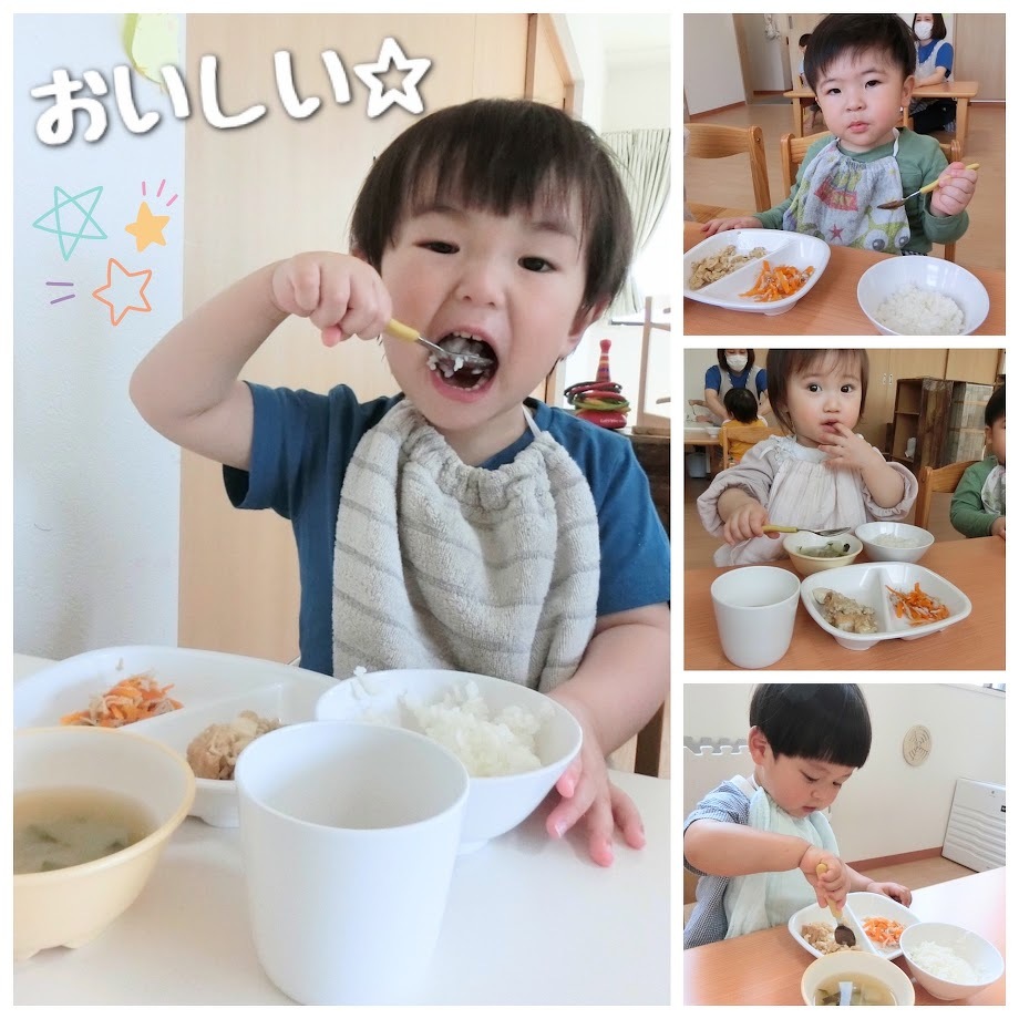 2023年05月30日(火) スタッフブログ おひさまぐみ/給食の時間 おひさまぐみの給食の様子です(^o^) 手を洗って席に着き、みんなで元気に 「いただきます!!」 しっかりと「あ~ん」とお口を開けて おいしそうに食べています♪ 子どもたちの毎日の楽しみの1つです☆彡
