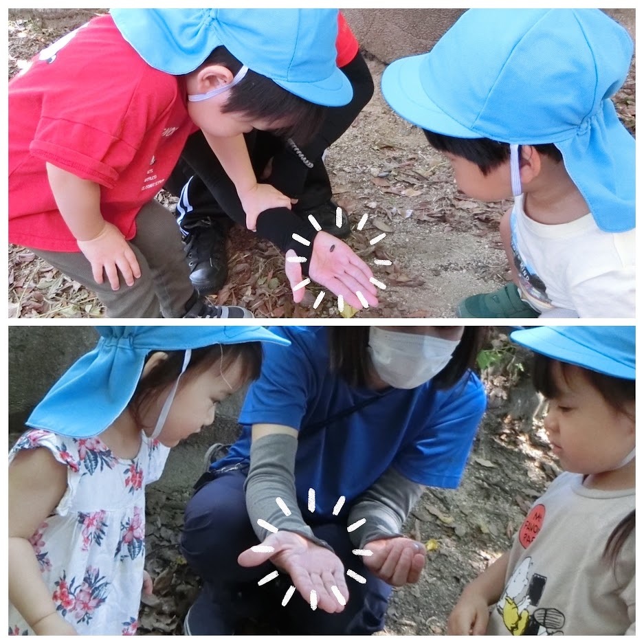 2023年06月27日(火) スタッフブログ おひさまぐみ/お散歩 おひさまぐみのお散歩の様子です(^o^) 地面には葉っぱがたくさん落ちていて 葉っぱをめくるとダンゴムシ発見☆ 興味津々でじっと観察したり、触れ合い ました!! 梅雨が明けると本格的な夏になるので お散歩の代わりに水遊びがスタート♪ また、その様子もご紹介しますね(^^)