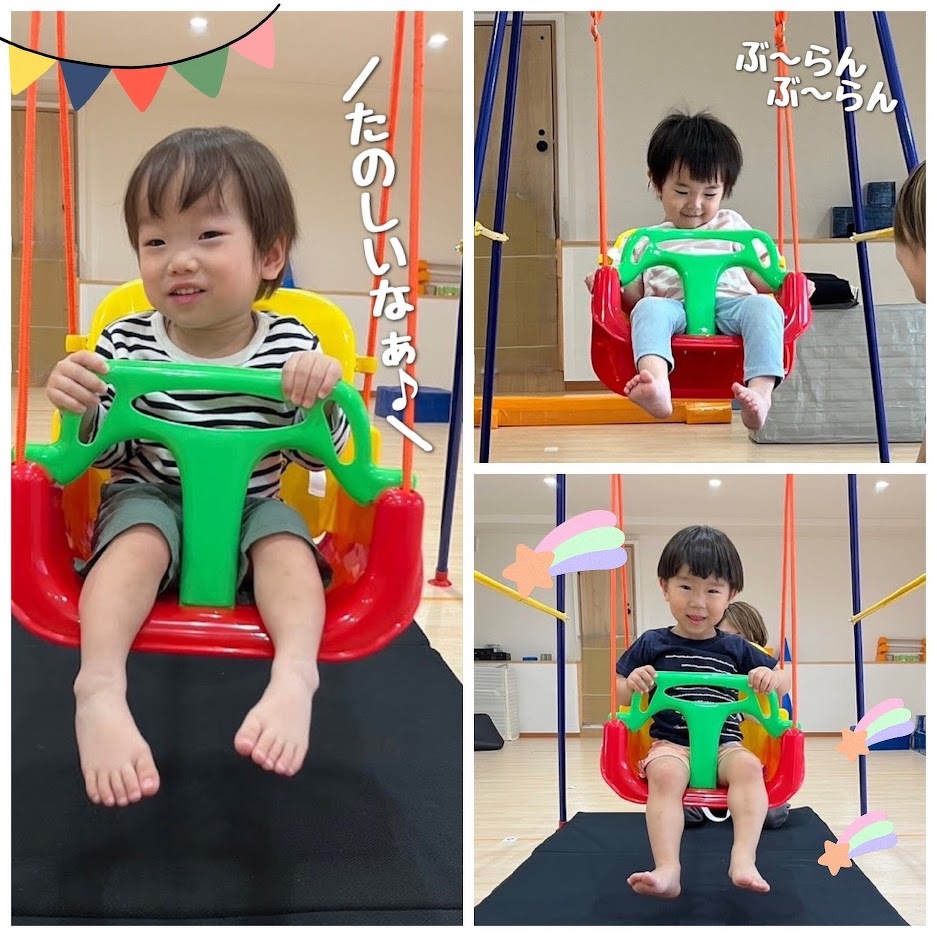 2023年07月19日(水) スタッフブログ おひさまぐみ/フィットネス(ツール) おひさまぐみのフィットネスの様子です(^o^) 新たに導入したブランコに子どもたちは最初 少し戸惑いながら乗っていましたが、慣れて くると笑顔になったり自ら足で漕ごうとする 子もいました♪ 回数を重ねるとさらに楽しめそうです(^^) また、みんなであそぼうね☆彡