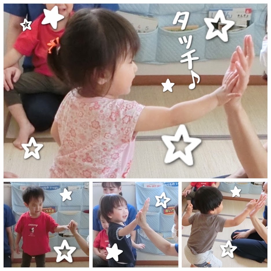 2023年08月29日(火) スタッフブログ おひさまぐみ/朝の様子 おひさまぐみの朝の様子です(^o^) 登園すると、まずは好きなおもちゃで 思い思いに楽しみます♪ 9:30頃になると、おもちゃを片付けて 朝の会へと移ります!! 『あさのうた』を歌って、名前を呼ばれた 人から先生にタッチ☆彡 こうして1日がスタートします(^^)♫