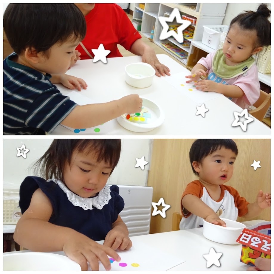 2023年09月01日(金) スタッフブログ にじぐみ/気球製作 にじぐみで気球を作りました(^o^) いろいろな色の丸シールを貼って、気球の 模様を付けていきます☆彡 台紙からなかなかはがすことが出来なくて 「んんー」と真剣な顔に♫ ペタペタペタとたくさんのシールを貼りました! カワフルで可愛らしい気球の完成です!(^^)!