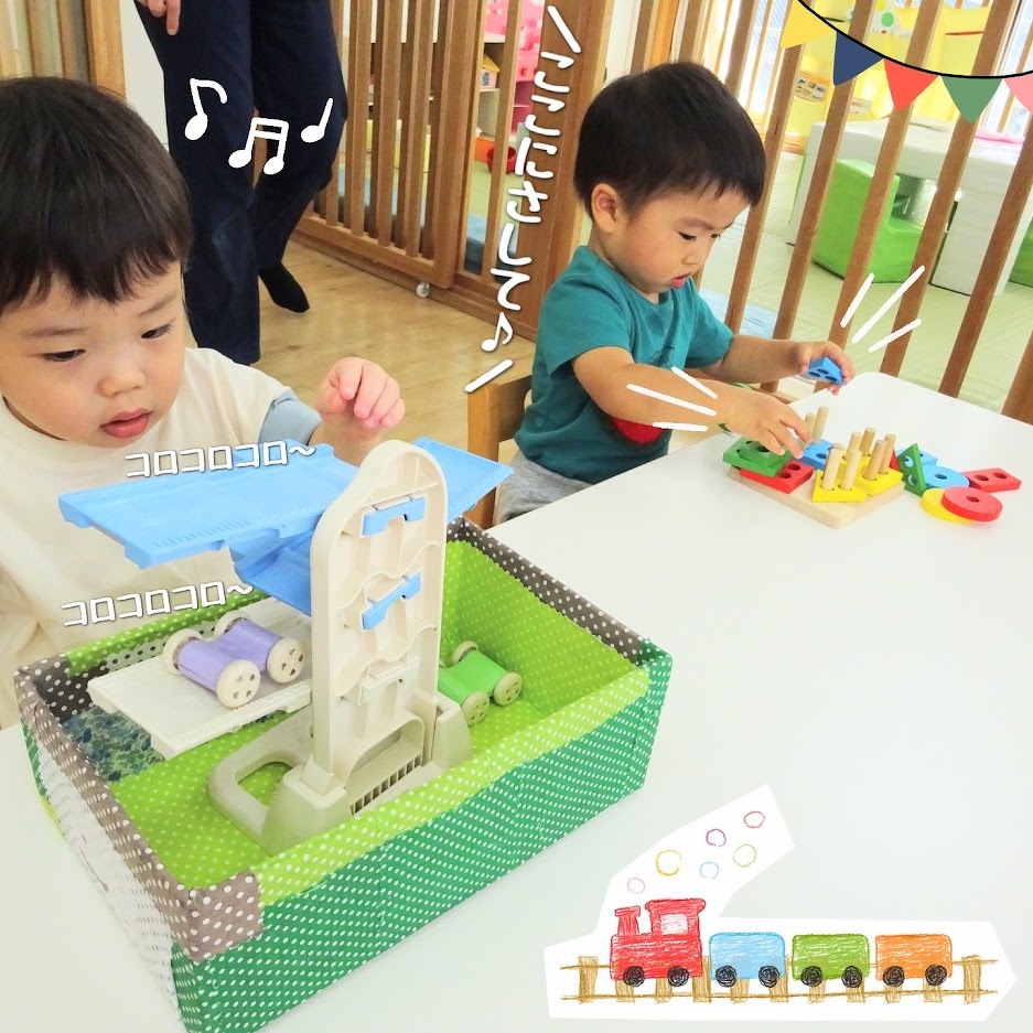 2023年10月04日(水) スタッフブログ にじぐみ/机上あそび にじぐみのみんなで机上あそびをしました(^o^) 机上あそびは、子どもが椅子に座って机の上を 遊びのスペースとして楽しむ活動です♪ 今回は“棒とおし”や“つみき”・“ころころスロー プ”で遊んでいる様子をご紹介していますが その他にもたくさんの机上あそびがあり、日に よって違ったあそびに挑戦しています(^^)☆彡