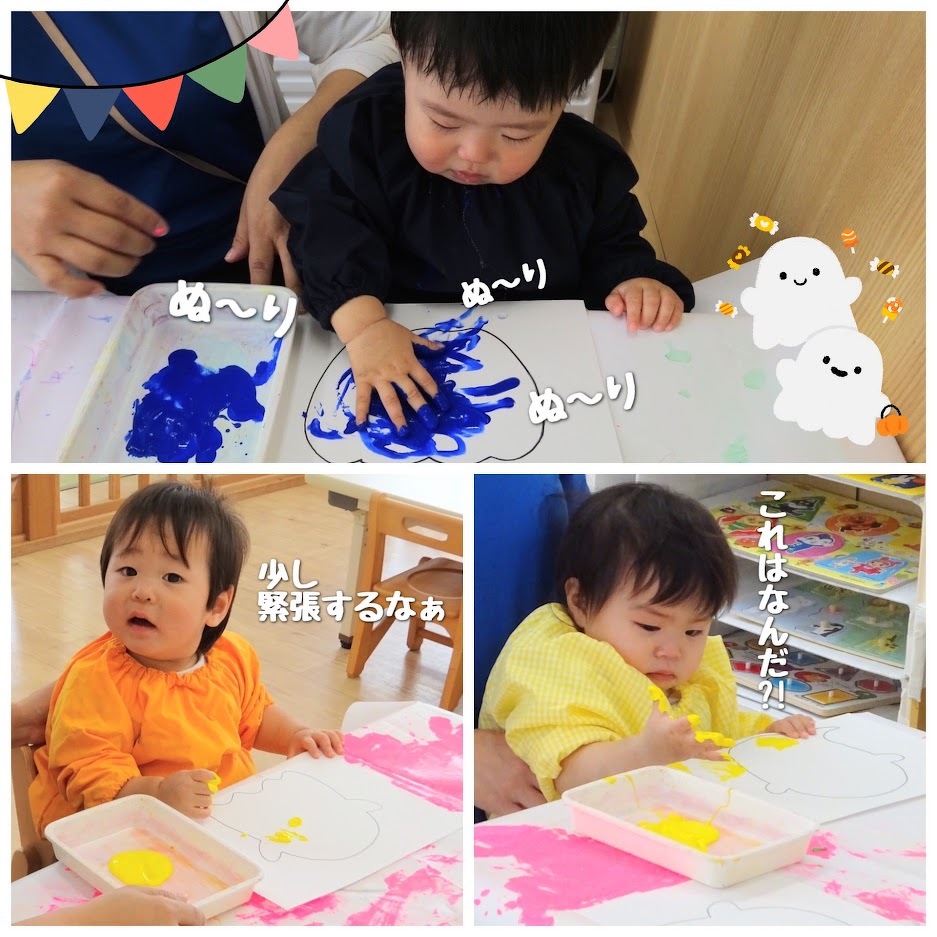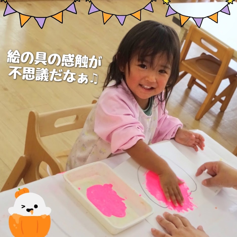 2023年10月19日(木) スタッフブログ にじぐみ/ハロウィン製作 にじぐみのみんなでハロウィンに向けて 製作をしました(^o^) 子どもたちに“おばけ”と“かぼちゃ”の絵柄から 好きな方を選んでもらい、色を塗るための 絵の具も好きなものを選んでもらいました♪ 容器に絵の具を出すと、ダイナミックに手を 入れて両手に広げる子もいれば、絵の具に 触れるまでに少し緊張している子がいたり☆ 反応は様々でしたが、時間が経つにつれて それぞれの楽しみ方を見つけていました(^^)♪ どんなハロウィンになるのか楽しみですね!