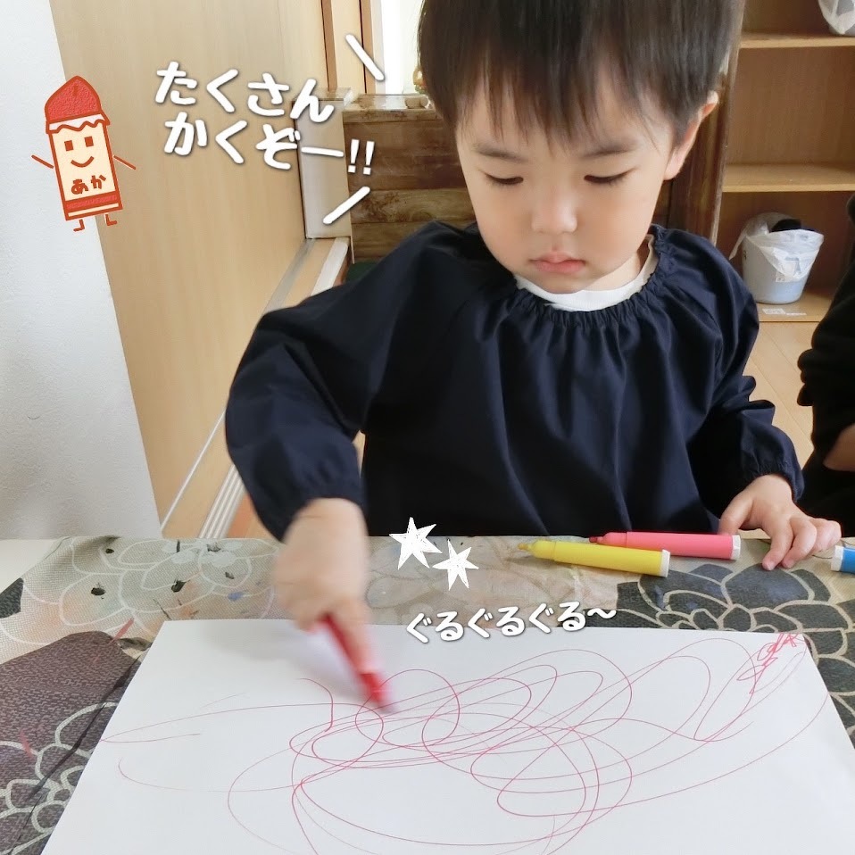 2023年12月05日(火) スタッフブログ おひさまぐみ/お絵描き おひさまぐみのみんなでお絵描きをした時の 様子をご紹介します(^o^) 画用紙に好きな色で自由に描いていきます♪ お絵描きにも慣れてきて、画用紙の端から 端までダイナミックに描く子どもたち☆彡 日によって、選ぶ色や描く線にも変化が出て くるので面白いですよね(>_<) また、お絵描きしようね♫