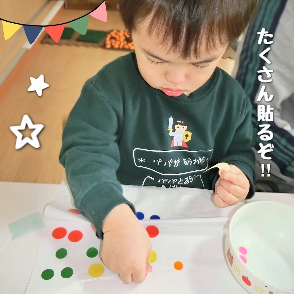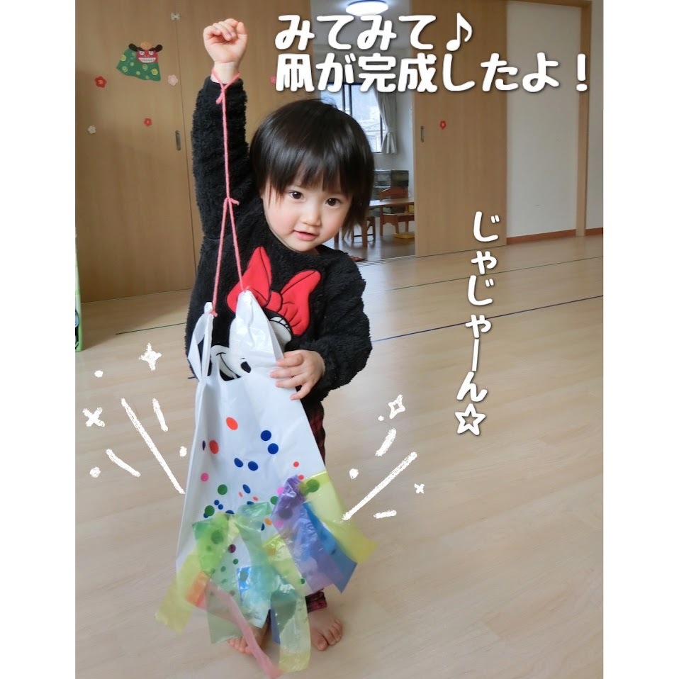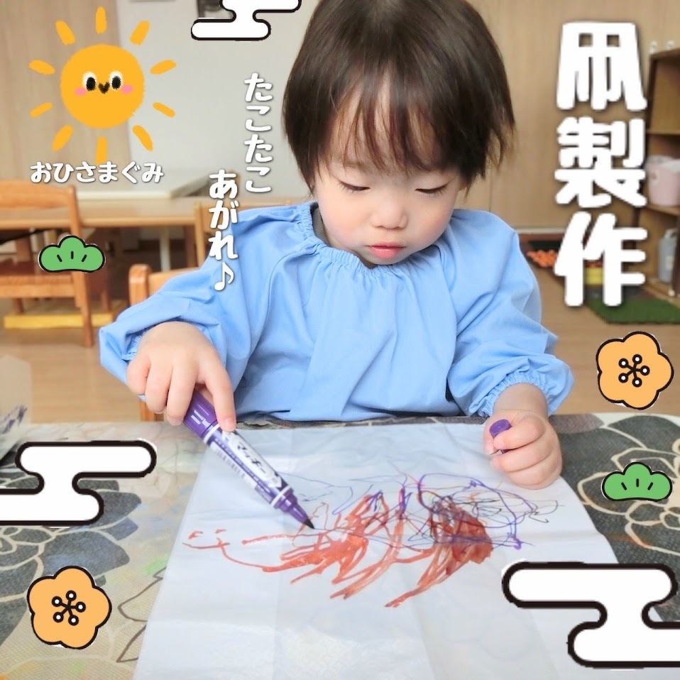 2024年01月10日(水) スタッフブログ おひさまぐみ/凧製作 2024年も元気にスタートしました!! 本年もよろしくお願いします! さて、今回はおひさまぐみのみんなで凧を 作った時の様子をご紹介します(^o^) 大小あるカラフルな丸シールを貼り付けたり マジックで絵を描いたり、凧に模様をつけて いきます♫長いしっぽを付けると凧の完成(^^) 天気の良い日に戸外で凧あげをする前に スタジオで練習しました☆彡 実際に戸外であげられるのが楽しみですね♫ 今日はお正月会がありました! その様子もまたご紹介しますね(^_^)♪