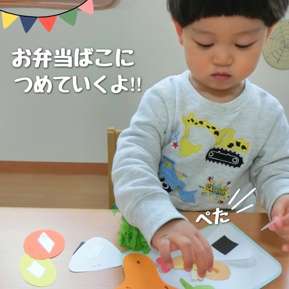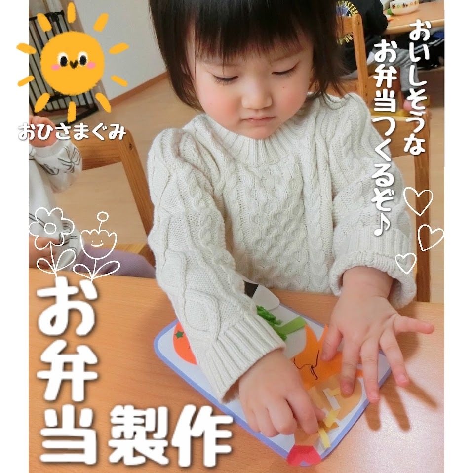 2024年03月14日(木) スタッフブログ おひさまぐみ/お弁当製作 先日、おひさまぐみのみんなでお弁当製作を しました! たこウィンナーや玉子焼きに模様を描いたり エビフライに衣をつけたりして、みんなの 大好きなおかずたちが出来ました(^^)♫ それをお弁当箱に思い思いにつめて(貼って) いき、とてもおいしそうなお弁当が完成☆ 来週は保護者の方が作ってくれたお弁当を 持ってみんなで“お別れ散歩”に行く予定です♪ 楽しみですね(^_^)