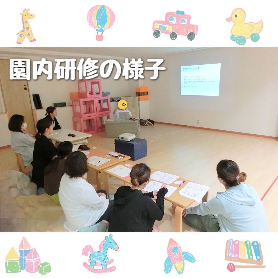 2024年06月26日(水) お知らせ 園内研修をしました。 先日、外部から講師の方にお越しいただき 『子どもの発達(1歳~2歳の心の育ち)』 について、例となる動画などを交えながら 発達のポイントを振り返りました。 改めて学ぶことも多く、とても充実した 時間となりました。 今後の保育に活かしていきたいと思います。