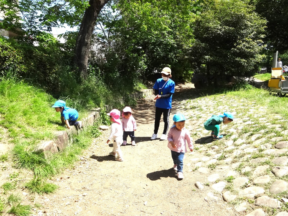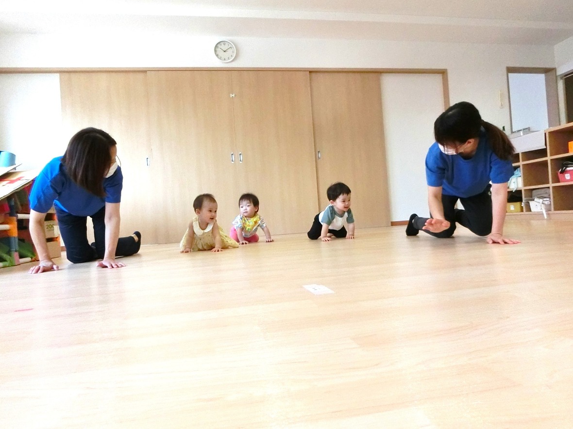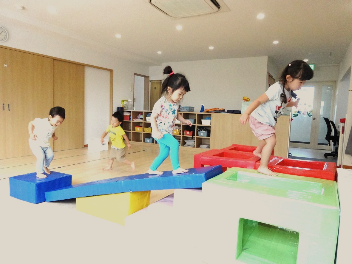 季節や天気に合わせて、近くの公園まで散歩にいったり、保育園のスタジオで体を動かして遊んでいます。