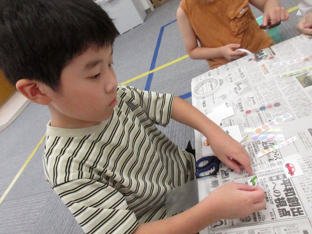 2024年09月10日(火) スタッフブログ 敬老の日にプレゼントする「しおり」を作りました 今日はみんなで制作の時間をもち、9月16日に訪問するデイサービス「そうら」の利用者の方にお渡しする「しおり」を作りました。いろいろなイラストをハサミで切り抜いたら、ラミネートフィルムの間にはさんで、熱処理すると、かわいい「しおり」のできあがりです。 どんなデザインにしようかな? 先生も一緒につくりました!