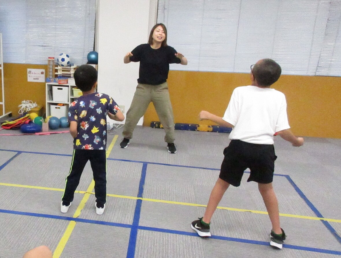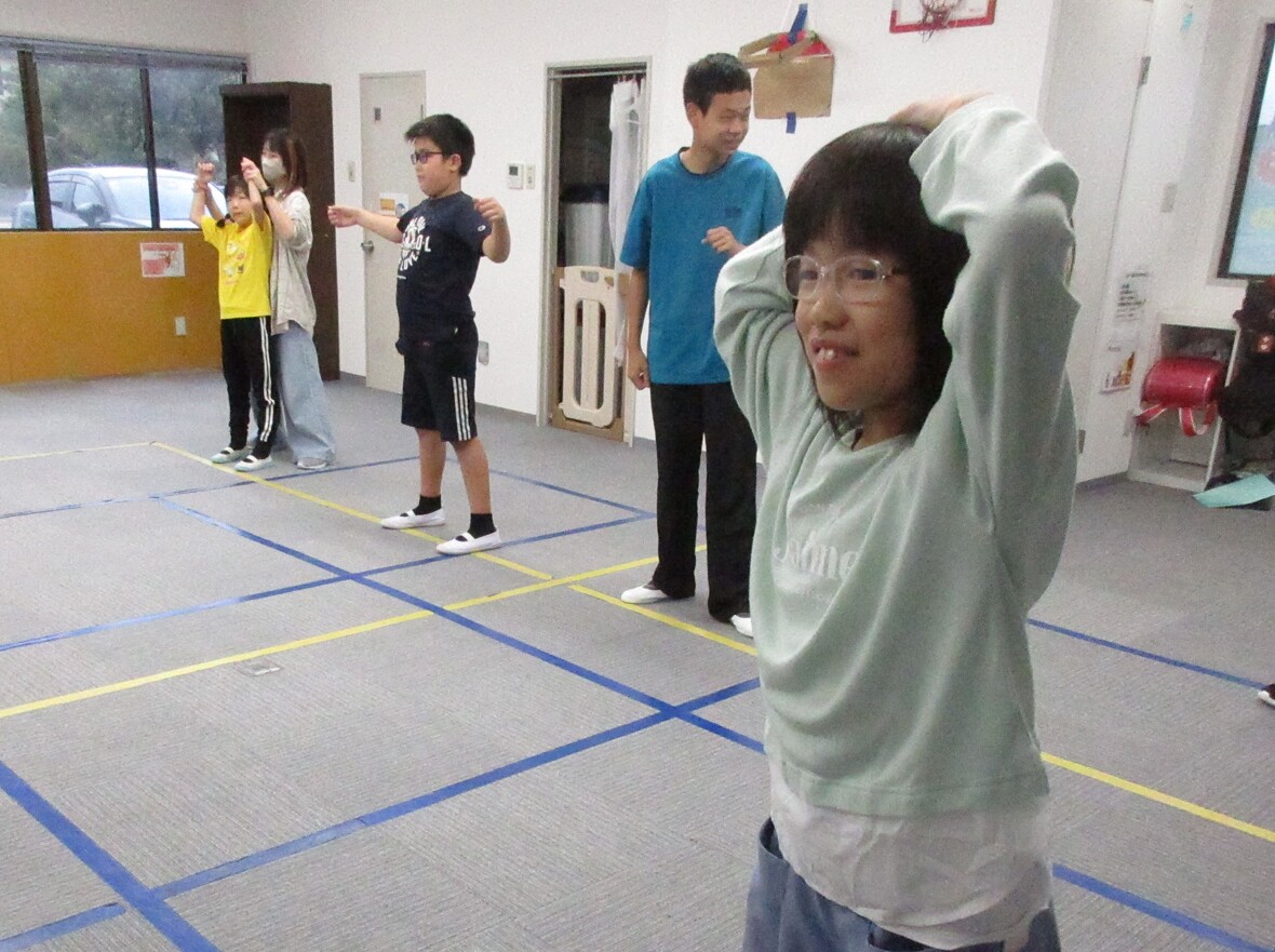 2024年10月17日(木) スタッフブログ ナツミ先生とフィットネス(今日はダンスです) 今日はナツミ先生とダンスの時間!先生をよく見て動きを覚えます。ダンスはリズムやバランス、そして反応のスピードを高める効果が高いプログラム!難しい動きで、「あれっ?」なんてときもあるけど、みんなしっかり取り組むことができました! がんばって、動きをおぼえるぞ~ 先生の動きをよく見て・・・ 時々頭をかかえてしまいます。後ろでは高校生が「どうやるの?」って聞いてるのかな