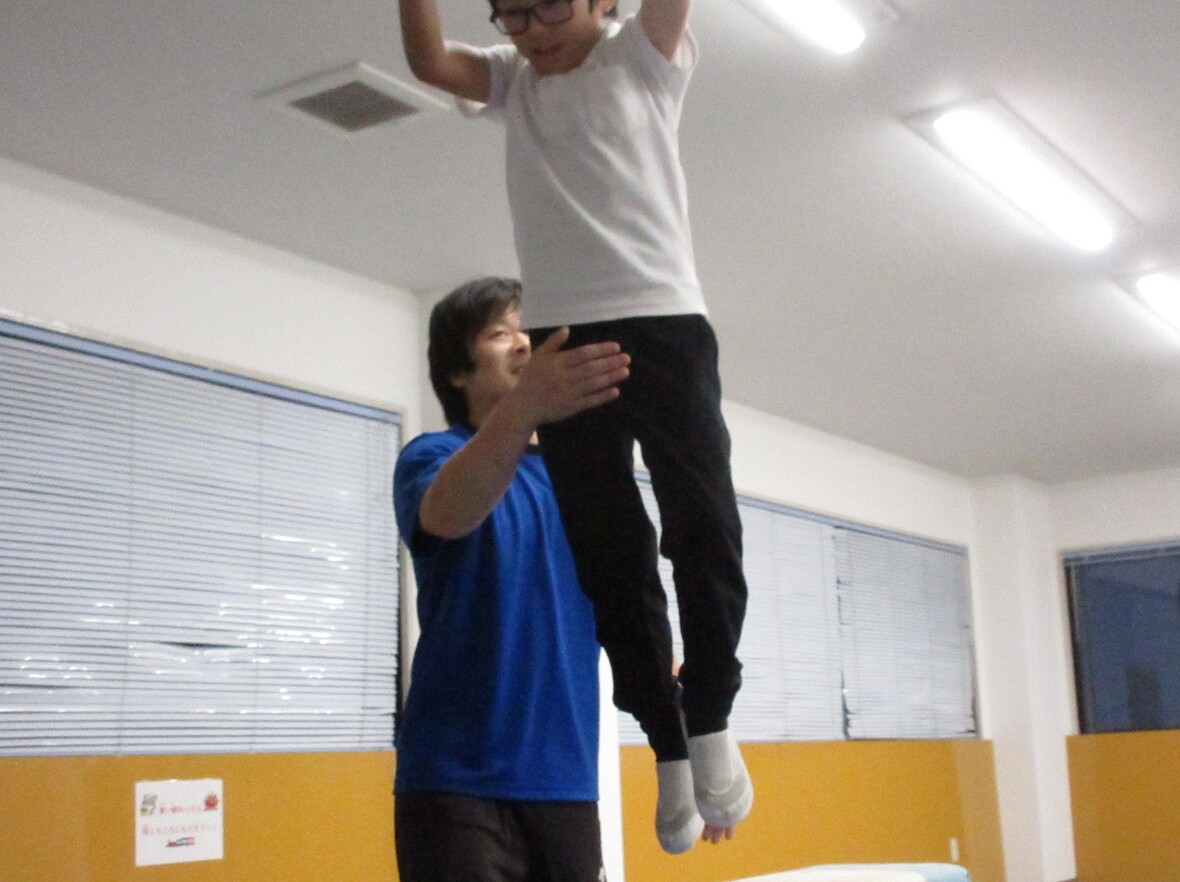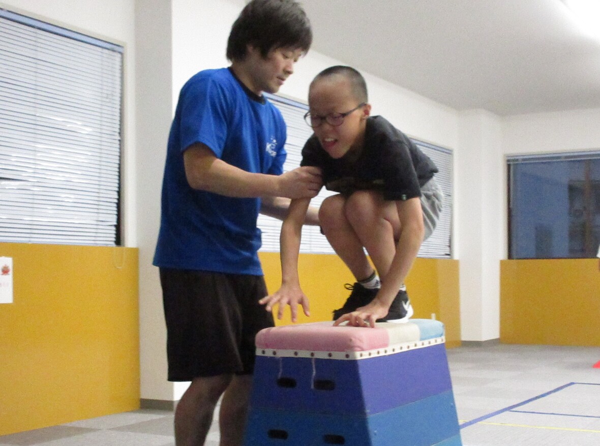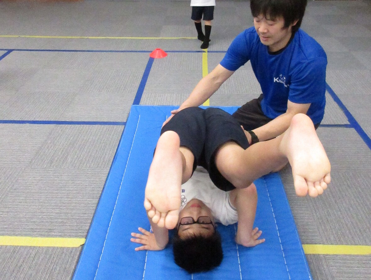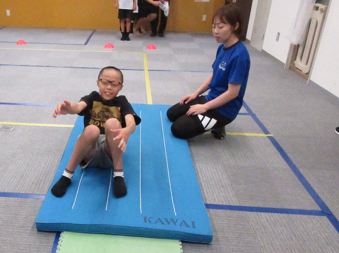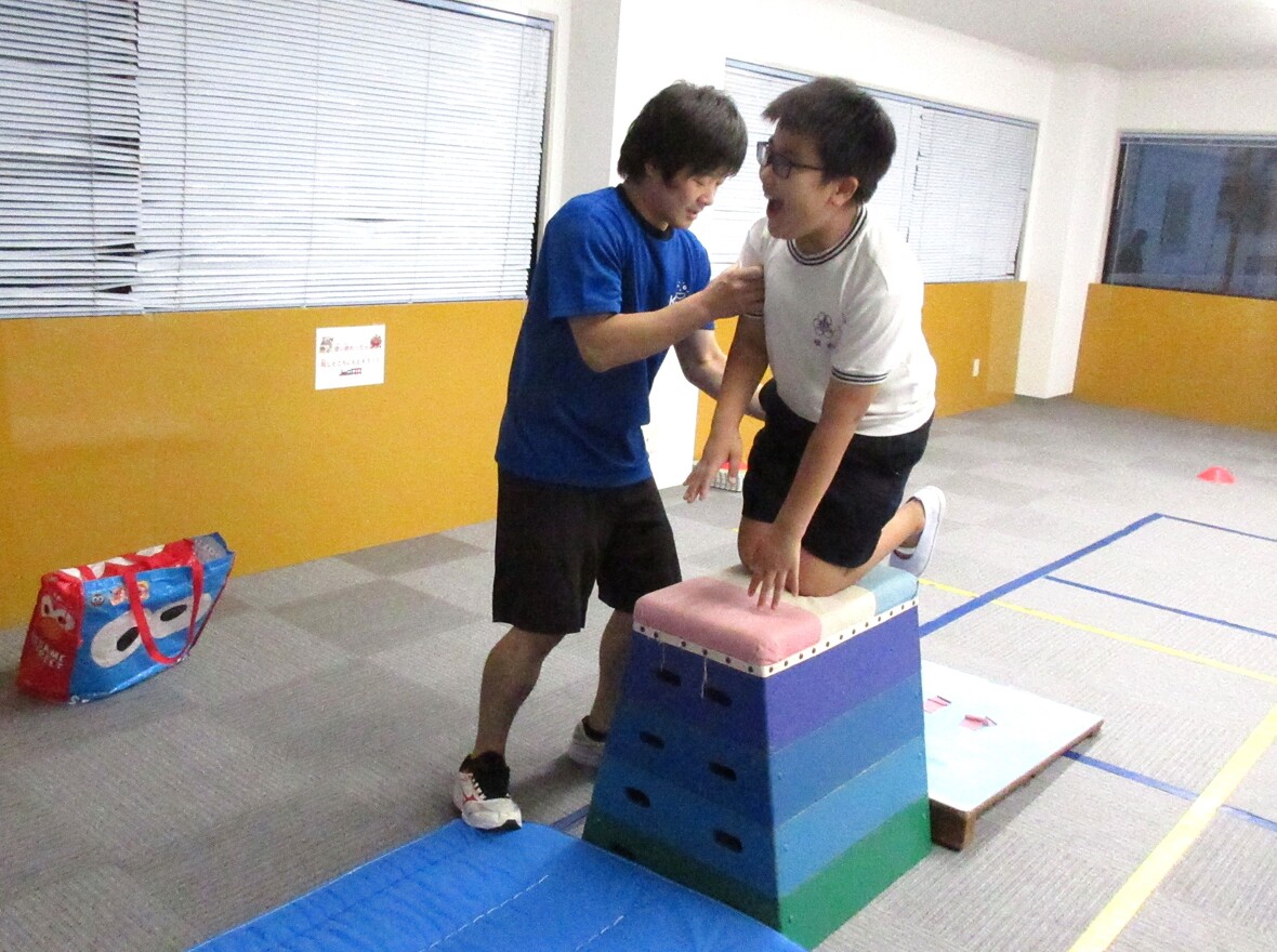 2024年10月18日(金) スタッフブログ 今日は器械体操! まずはマット運動で前回り! 今日はマット運動と跳び箱にチャレンジしました!マット運動で前転、後転を練習した後は、跳び箱にチャレンジ!高く跳びあがる練習として、跳び箱の上に跳び乗ってから、前に大きくジャンプをしました。両足を揃えて跳び乗ることで、閉脚跳び(足を揃えたまま、跳び箱を跳び超える少し難しい方法)の導入にもなるのです! 後回りもできますよ~ いよいよとび箱! 跳び箱にあがってから 大きくジャンプ!