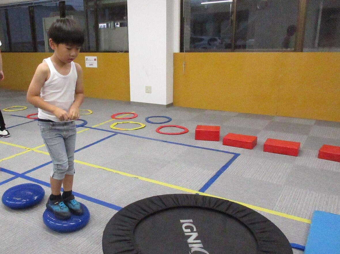2024年10月28日(月) スタッフブログ 学習カードプログラムも人気です! 学習カードプログラムはどんどんバージョンアップ!トランポリンやバランスディスクも使って、組み合わせの運動がよりバリエーション豊富になりました!もちろん、数字や図形のお勉強もしっかり頑張っていますよ! トランポリンはみんな上手になりました! バランスディスクからトランポリンへ・・・これは難しい運動です カードひっくり返し! たして10になるのは?
