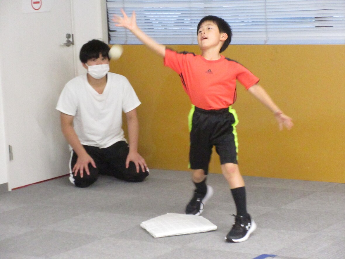 2024年11月06日(水) スタッフブログ 今日はハンドベースボール! ハンドベースボールは、バットの代わりに手のひらを使って行う野球?手が痛くないように柔らかなゴムボールを使うため、低学年でも安全に参加することができますね!ボールの軌道を予測して「打つ」動作は、ビジョントレーニングや協応動作のトレーニングにも最適です。 ボールを手で打つのは、難しい!!! 構えが安定していますよ! クリーンヒット!!