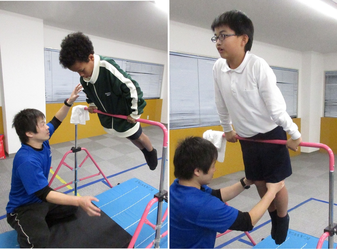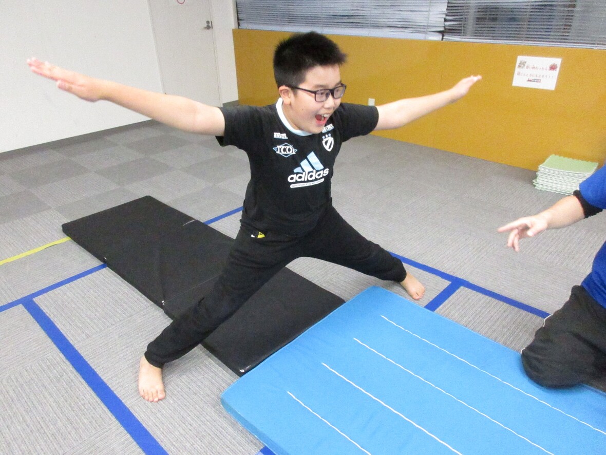 2024年11月08日(金) スタッフブログ ミポ先生、ケイスケ先生と楽しく体操! 今日はミポ先生、ケイスケ先生と鉄棒の練習!鉄棒を使う前には体操に必要な補強運動(ストレッチングや筋力トレーニング)も教わりました。鉄棒の上で体を腕で支え、姿勢を保つ「ツバメのポーズ」はいろいろな技の基本!どんどん新しい技にもチャレンジしていきたいと思います! やわらかい~ 腹筋も大事です! 息を止めずに頑張って ウォーミングアップでマット運動も どちらも安定した姿勢です! 低学年のお友だちもがんばってます 脚の位置でバランスをとっていきます