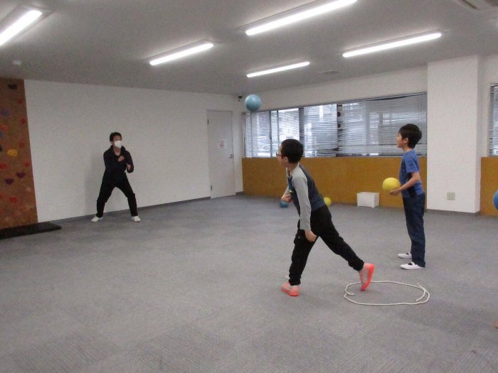 今日は「ドッチボール」のプログラムを行いました♬ 投げ方や取り方などを教わりながら試合も行いみんな楽しく過ごしていました☆