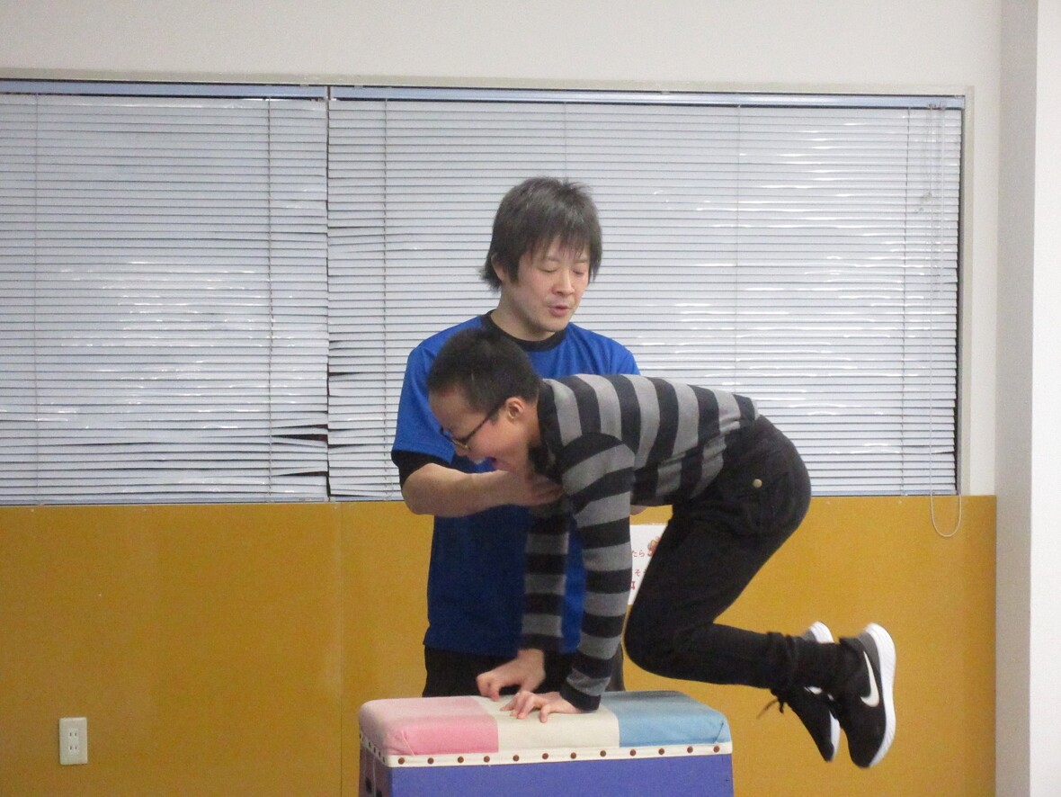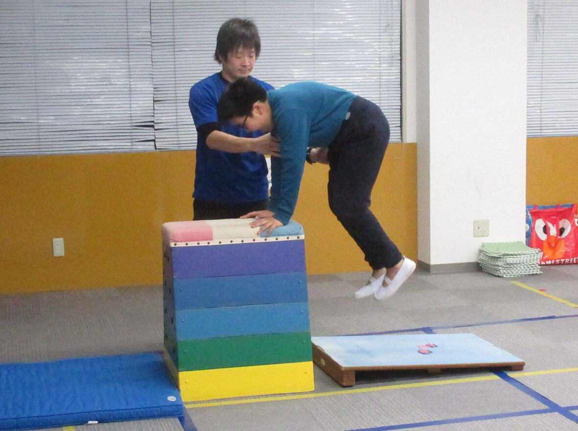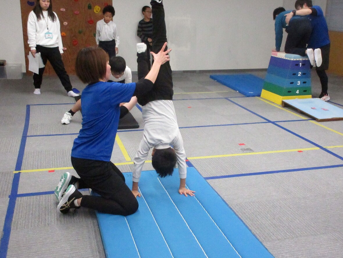 2024年11月29日(金) スタッフブログ 跳び箱とマット運動にチャレンジ!! 毎週金曜日の「体操の時間」では、ミポ先生とケイスケ先生のわかりやすい指導のおかげでみんな本当に上達してきました。今、跳び箱では「閉脚跳び」にも少しずつチャレンジしています。マット運動は倒立前転を練習中のお友だちもいます! 両足を揃えて、跳び箱の上に跳びあがる練習からスタート この地道な努力が閉脚跳びにつながります しっかり倒立してから前転! 反動で脚を持ち上げて倒立します!