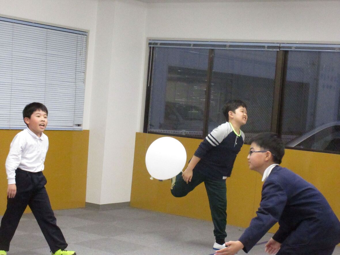 2024年12月03日(火) スタッフブログ みんな大好き「風船バレーボール」 今日はみんなが大好きな「風船バレーボール」にチャレンジ!フワフワッとどこに行くかわからないのが楽しさの秘訣?低学年のお友だちも上級生に負けないようにがんばりました! 高学年のお兄さんと対戦! どこにいくかわからない? ナイスショット! 風船が好きすぎて、放してくれません。お兄さんたちはだまって待ってくれます!