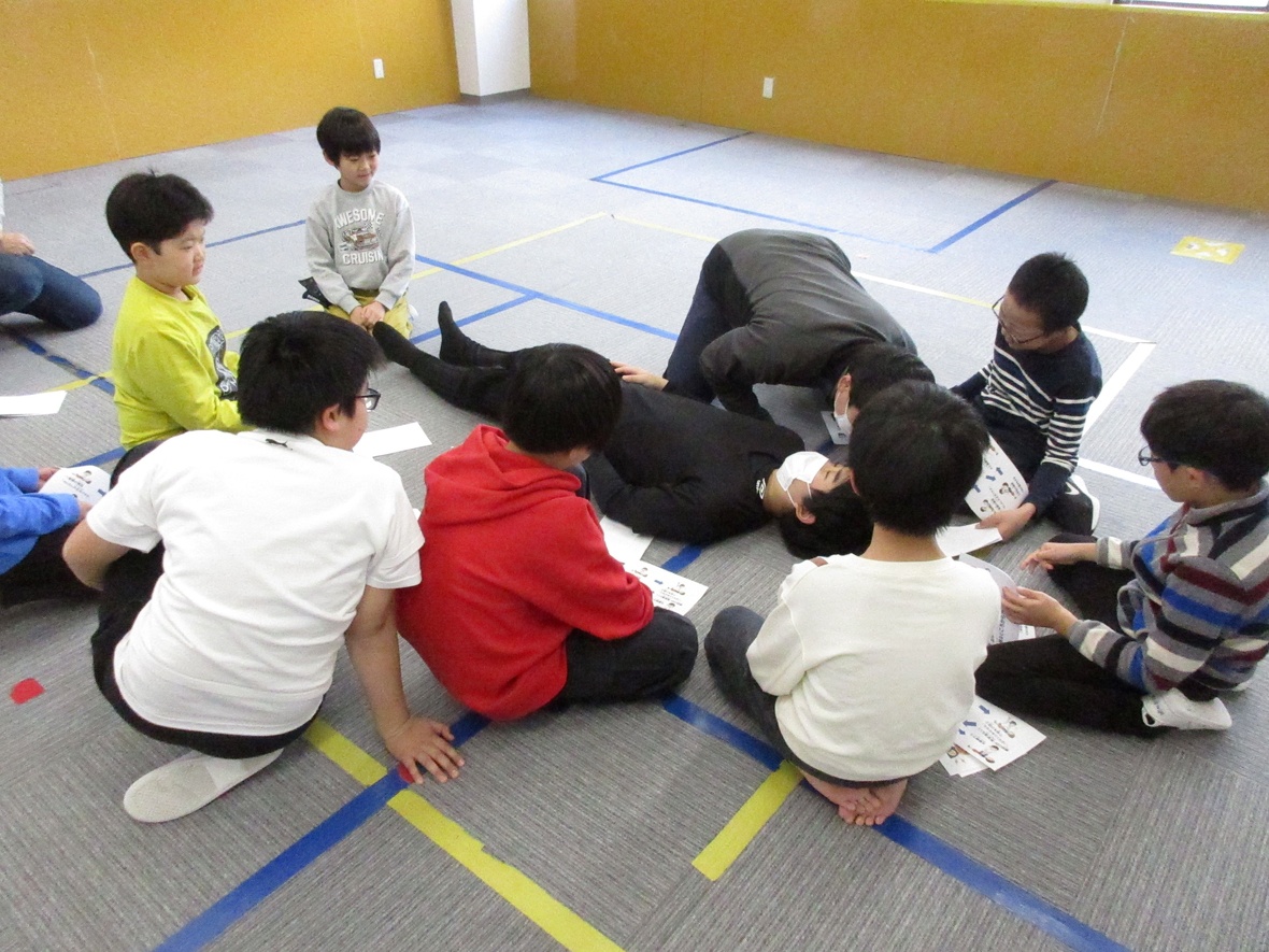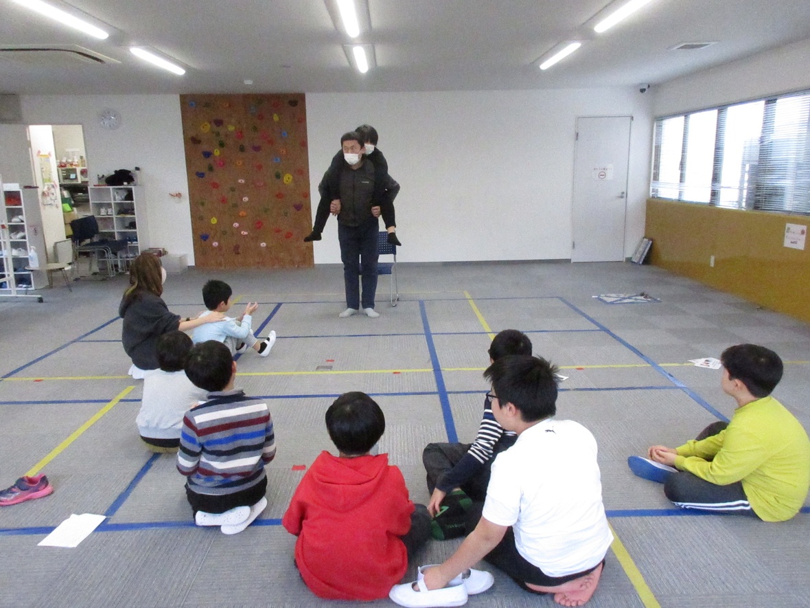 2024年12月27日(金) スタッフブログ タイ先生と安全学習をしました! 今日でスポーツ園の今年のプログラムは終了!最終日はみんなで「安全学習」を行いました。けがや急病で苦しんでいる人を見つけた時に、子どもたちができる救急法を学びました。けがをした人を安全なところに運ぶ勉強では、緊急でない場合は安静を保つために、無理に慌てて運ぼうとしないことも大切であると学び、その他にも人を救助するときに守らなければいけないことをみんなで考えていきました。 倒れている人に声をかけ、まわりの大人に知らせます できるだけ体が揺れないように慎重に 途中で意識を失っても大丈夫なように、けが人の手をもって背負います。 すばやく移動するためには、こんな運び方もあります。