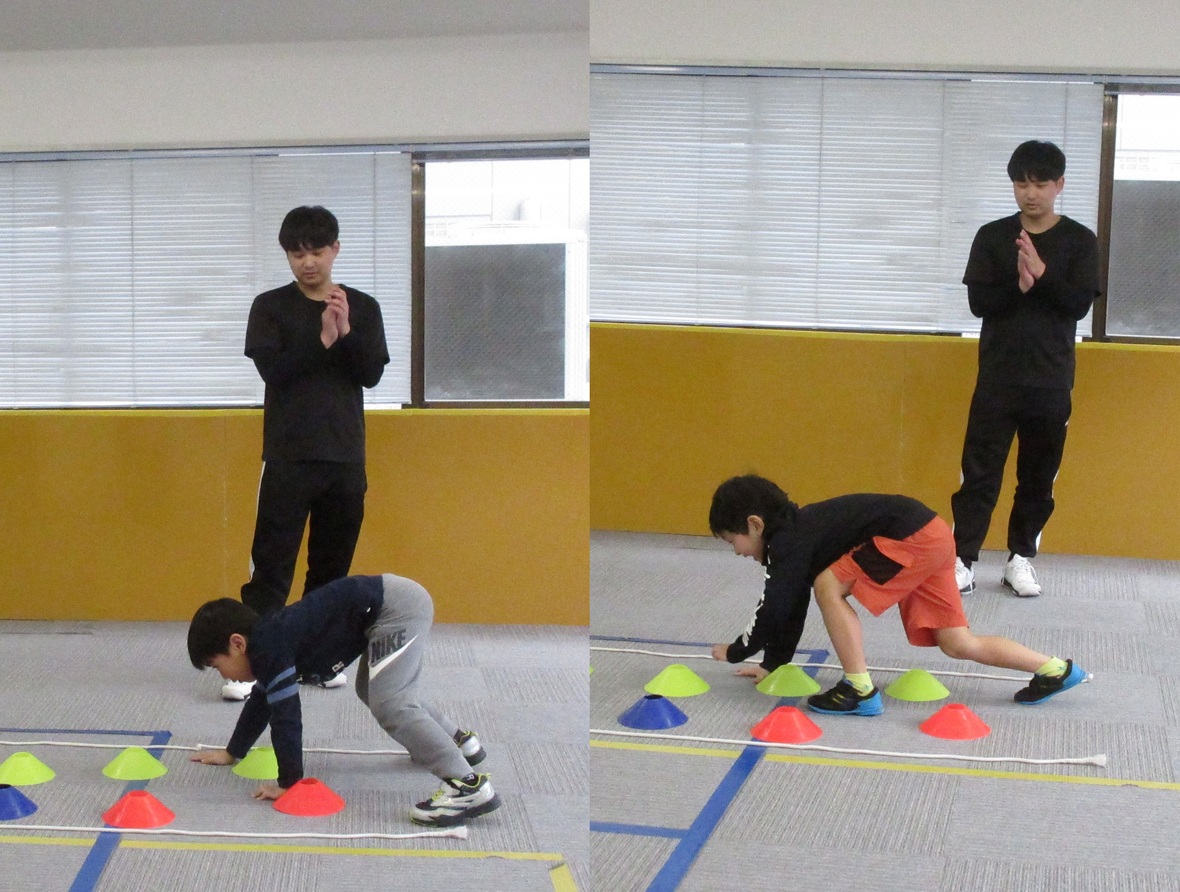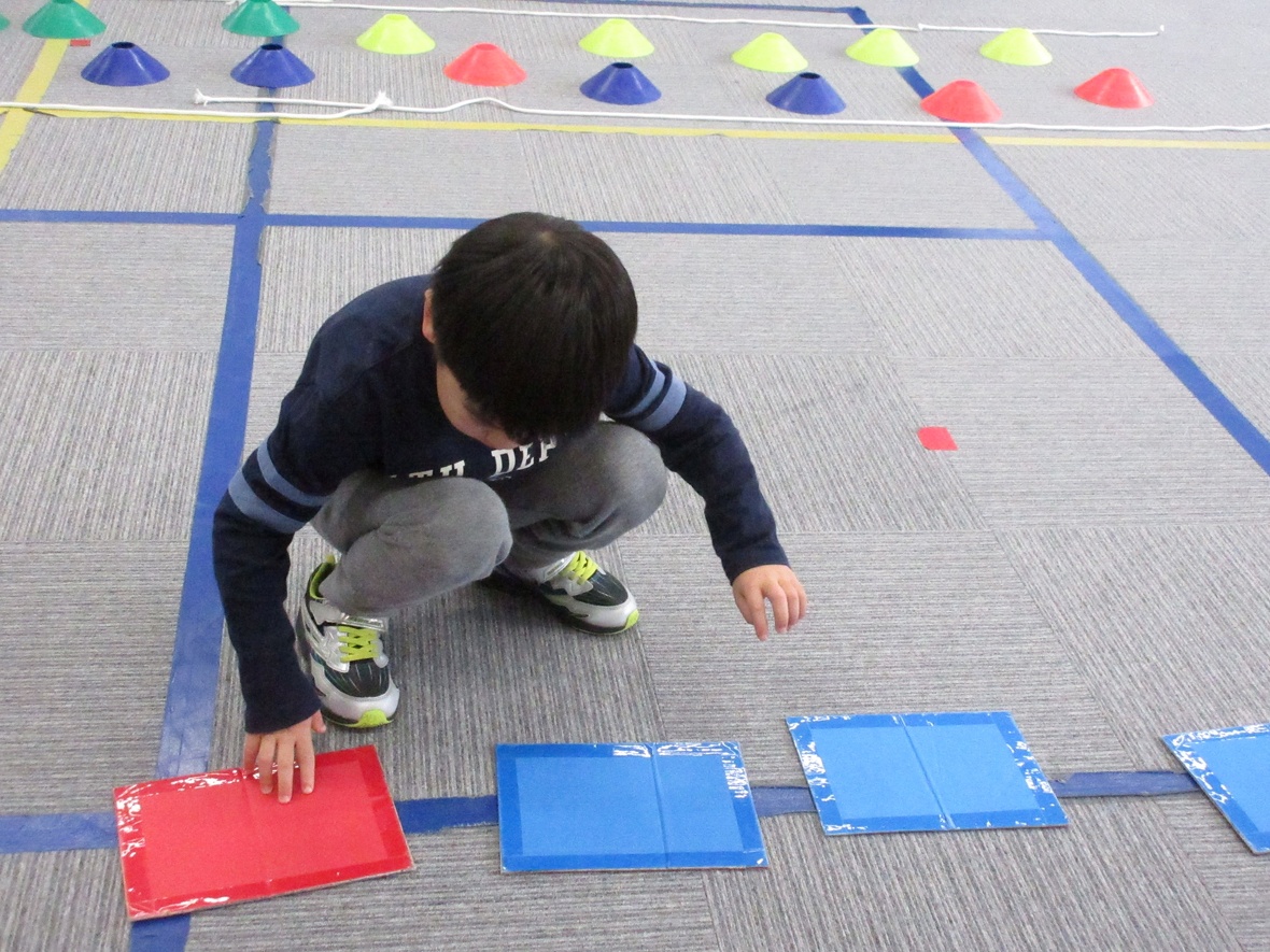 2025年01月06日(月) スタッフブログ お勉強をしながら運動!学習カードプログラム! あけましておめでとうございます。本年もどうぞよろしくお願いいたします。さて軽い運動と記憶には深い関係があることが、最近の研究で少しずつ明らかになっています。学習カードプログラムでは、運動の刺激と数や図形のお勉強を組み合わせることで、記憶力が向上し効果的に学習を進めることを目的としています。また、できるだけいろいろな種類の運動を行うことで、バランスのとれた体力を育むことも目標です。 四つ這い移動は、体幹を鍛えるうえで重要な運動です。 トランポリンは全身の筋力とリズム感を養います。 カードひっくり返し(オセロと呼んでいます)は敏捷性と関係が深いですね。