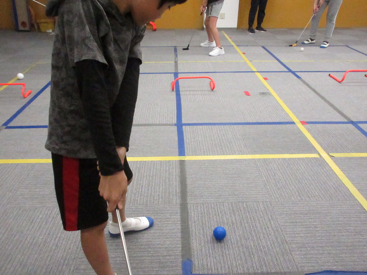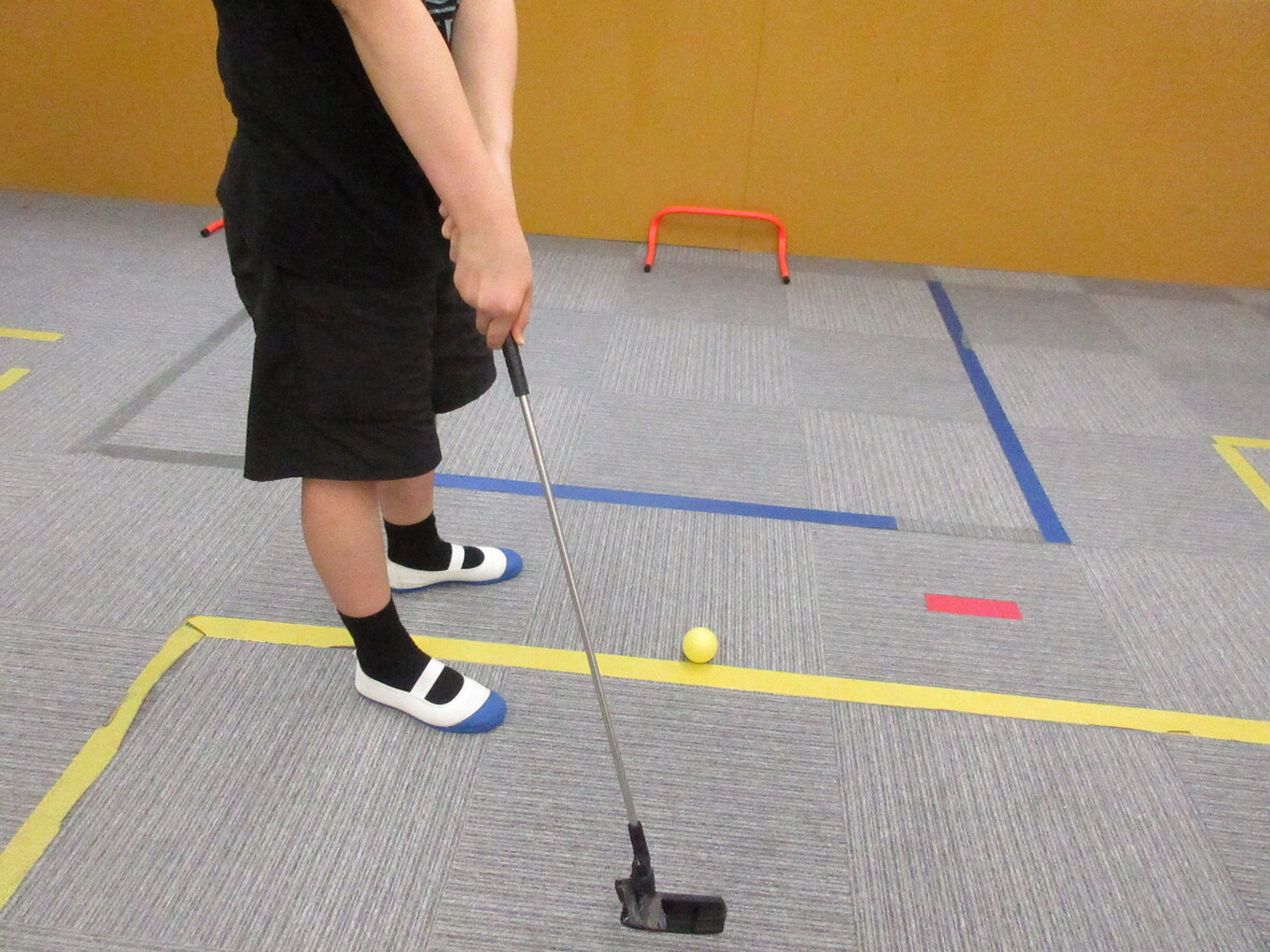 パス練習のあとはコースを回って置かれているホールを狙います。