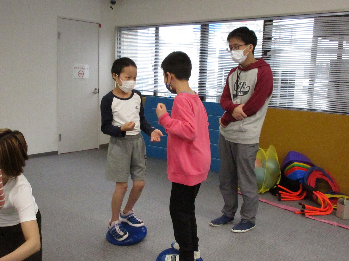 2023年04月07日(金) スタッフブログ フィットネス(体感トレーニング) 今日は「フィットネス(体幹トレーニング)」のプログラムをおこないました♪ 様々な遊具を使いゲールを取り入れて楽しく参加している姿が見られました☆