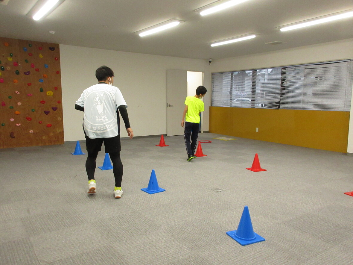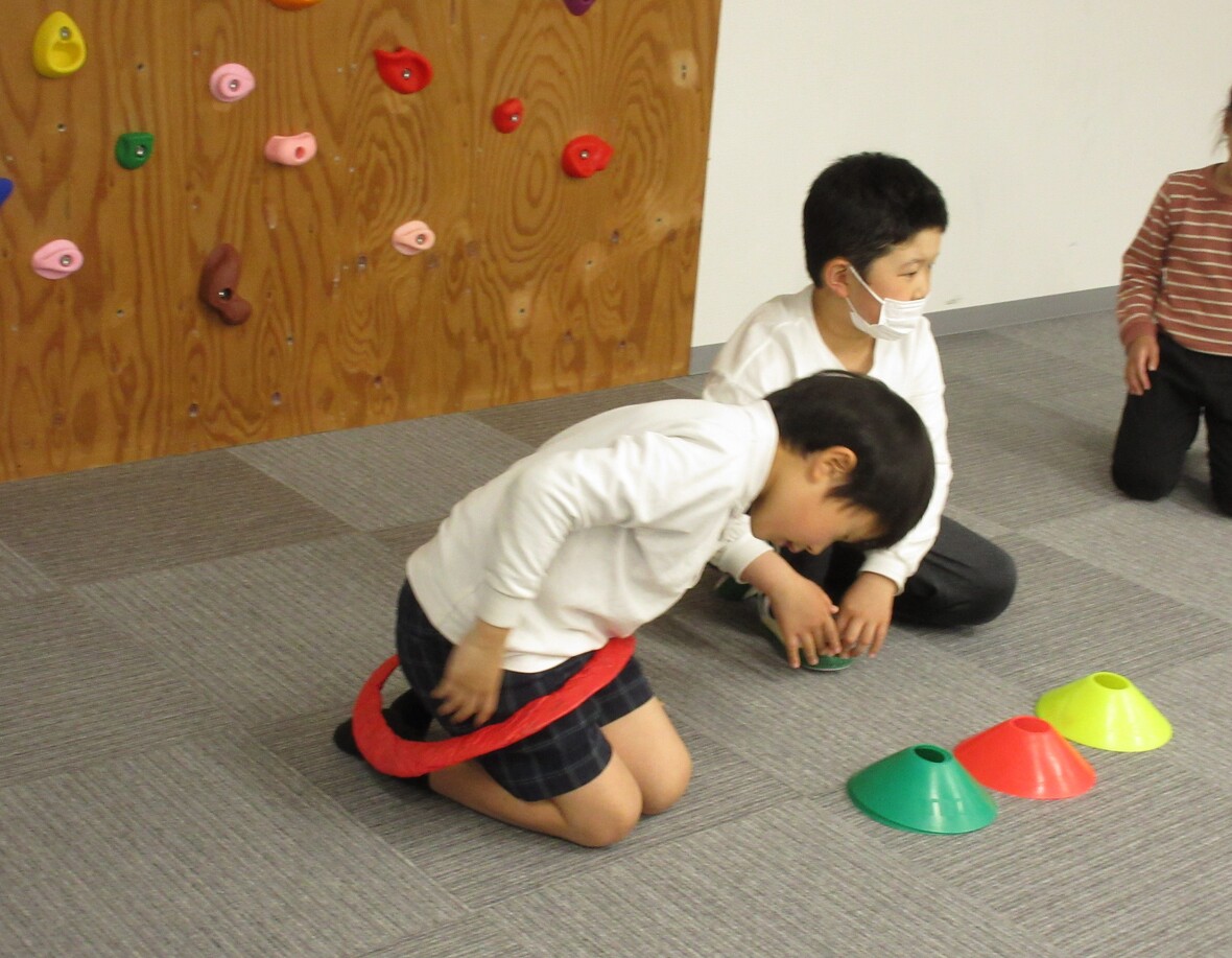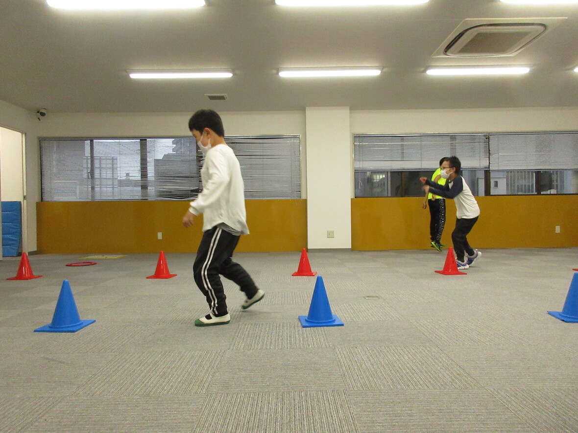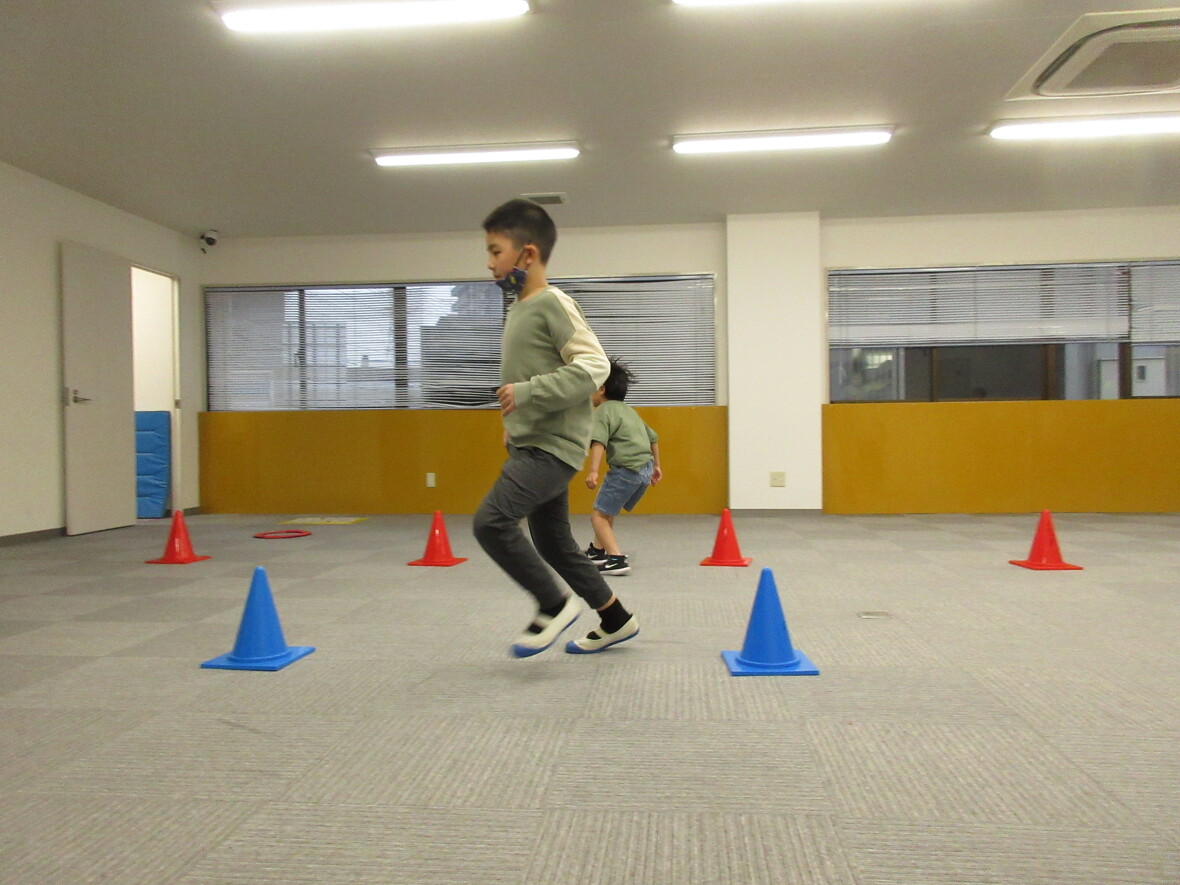 2023年04月27日(木) スタッフブログ コーディネーション(体幹・ジャンプ) 今日は「コーディネーション(体幹・ジャンプ)」のプログラムを行いました♬ 2チームに分かれて輪っかやコーンを使ってジャンプなど様々な運動をしました☆