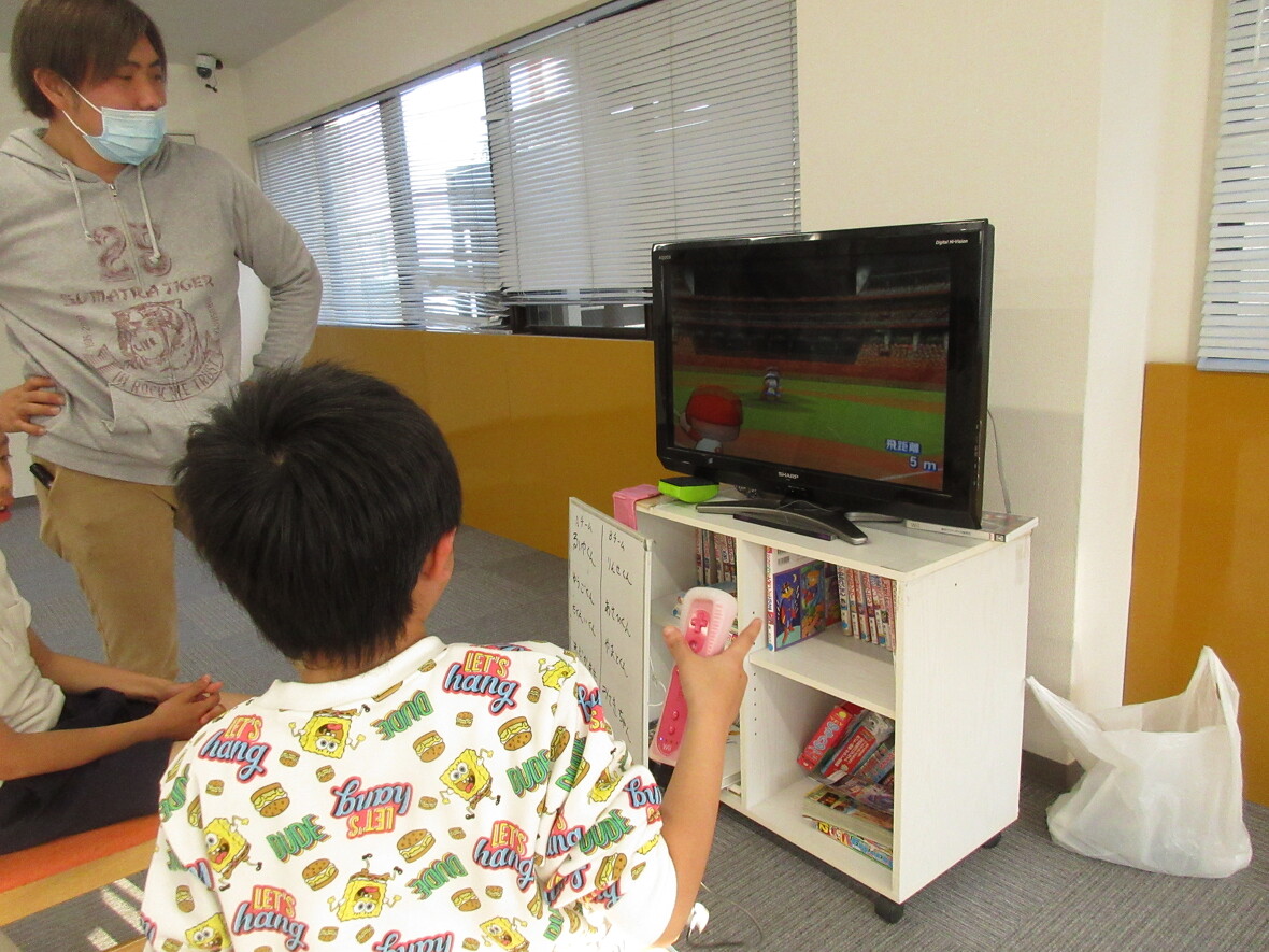 2023年05月05日(金) スタッフブログ eスポーツ 今日は「eスポーツ」のプログラムでした♬ 野球のバッティングでホームランを何本打てるか、どれくらい飛ばせるかをみんなで行いました♪ お友達がしている姿に真剣に見ながら楽しく過ごしていました☆