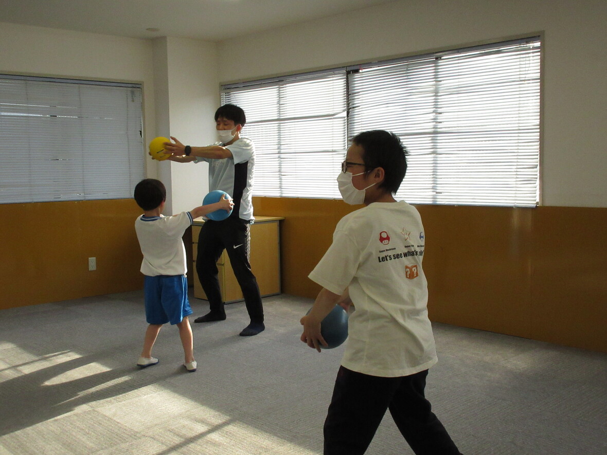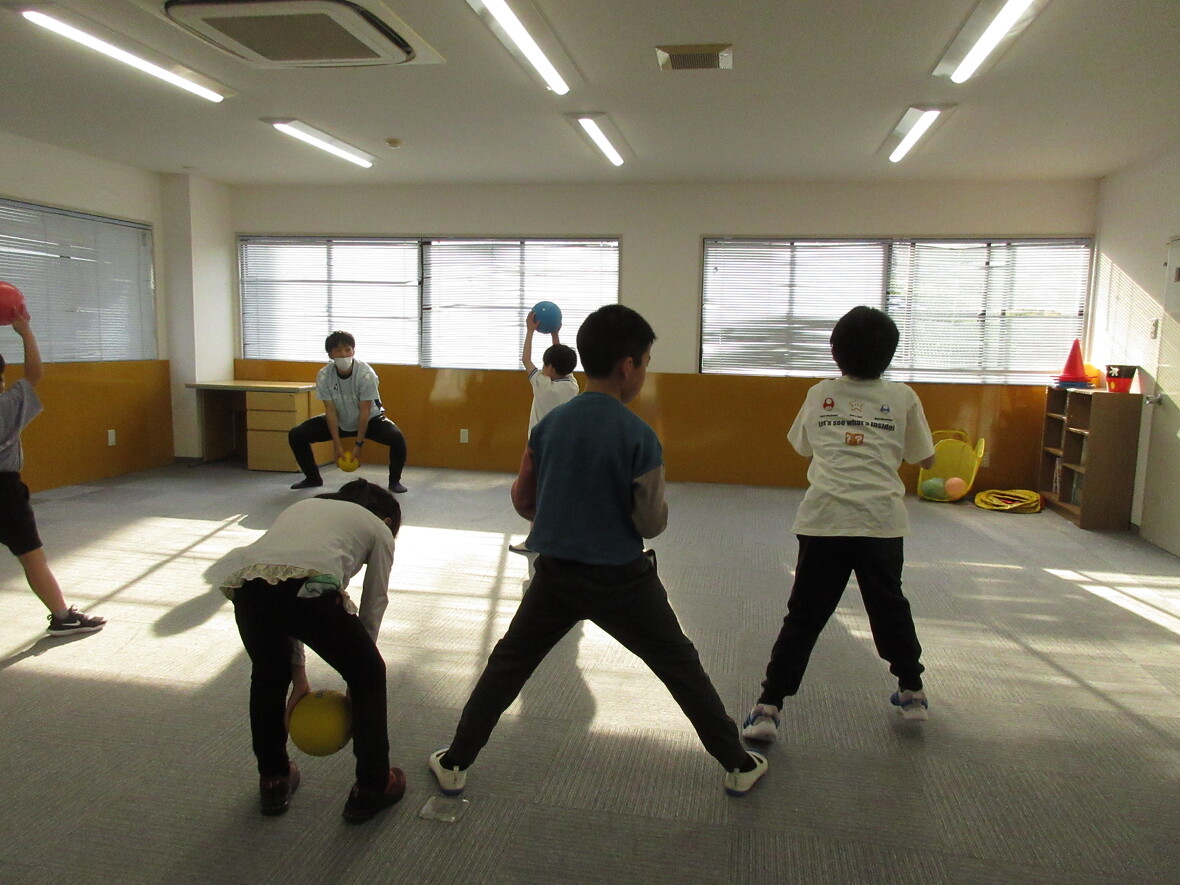 2023年05月09日(火) スタッフブログ コーディネーション(ボールうんどう) 今日は「コーディネーション(ボールうんどう)」のプログラムでした♬ しっかりと先生の説明を聞き動く姿が見られました☆彡
