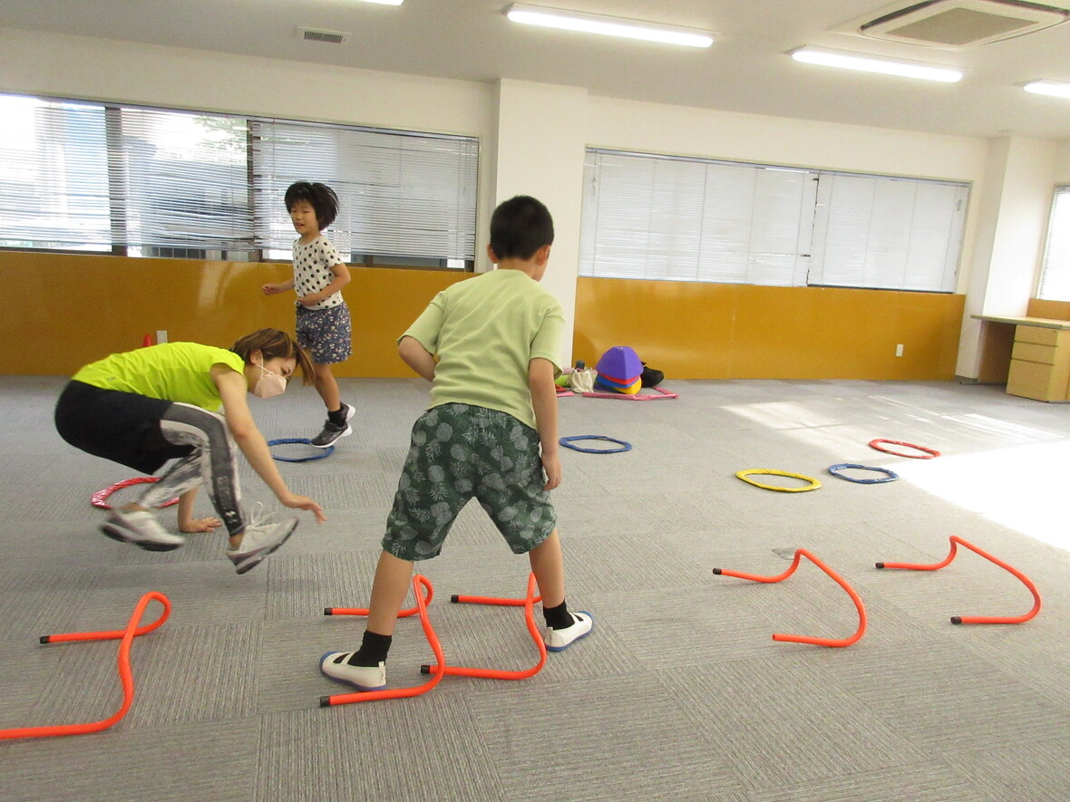 2023年05月12日(金) スタッフブログ フィットネス(サーキットトレーニング) 今日は「フィットネス(サーキットトレーニング)」のプログラムでした♬ 様々な遊具を使っていろんな運動をしてみんな楽しそうに参加していました☆