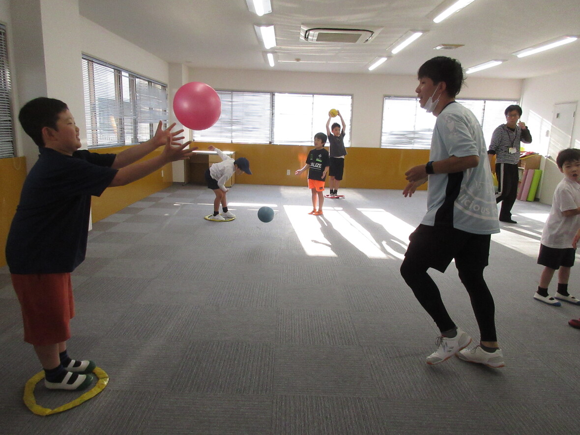 2023年05月24日(水) スタッフブログ コーディネーション(ボールうんどう) 今日は「コーディネーション(ボールうんどう)」のプログラムを行いました♬ ボールを使ってストレッチをしたりお友達同士でボールを渡したりと楽しく運動をしている姿が見られました☆