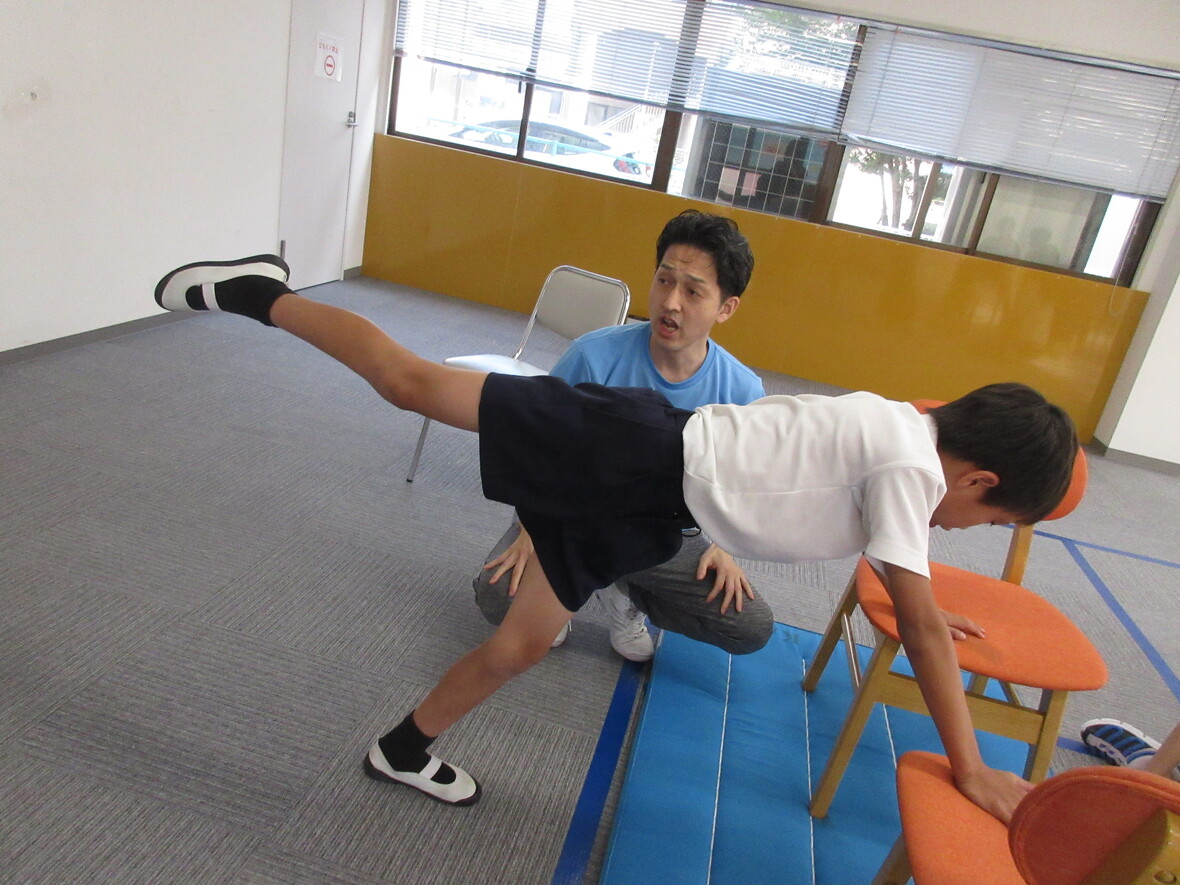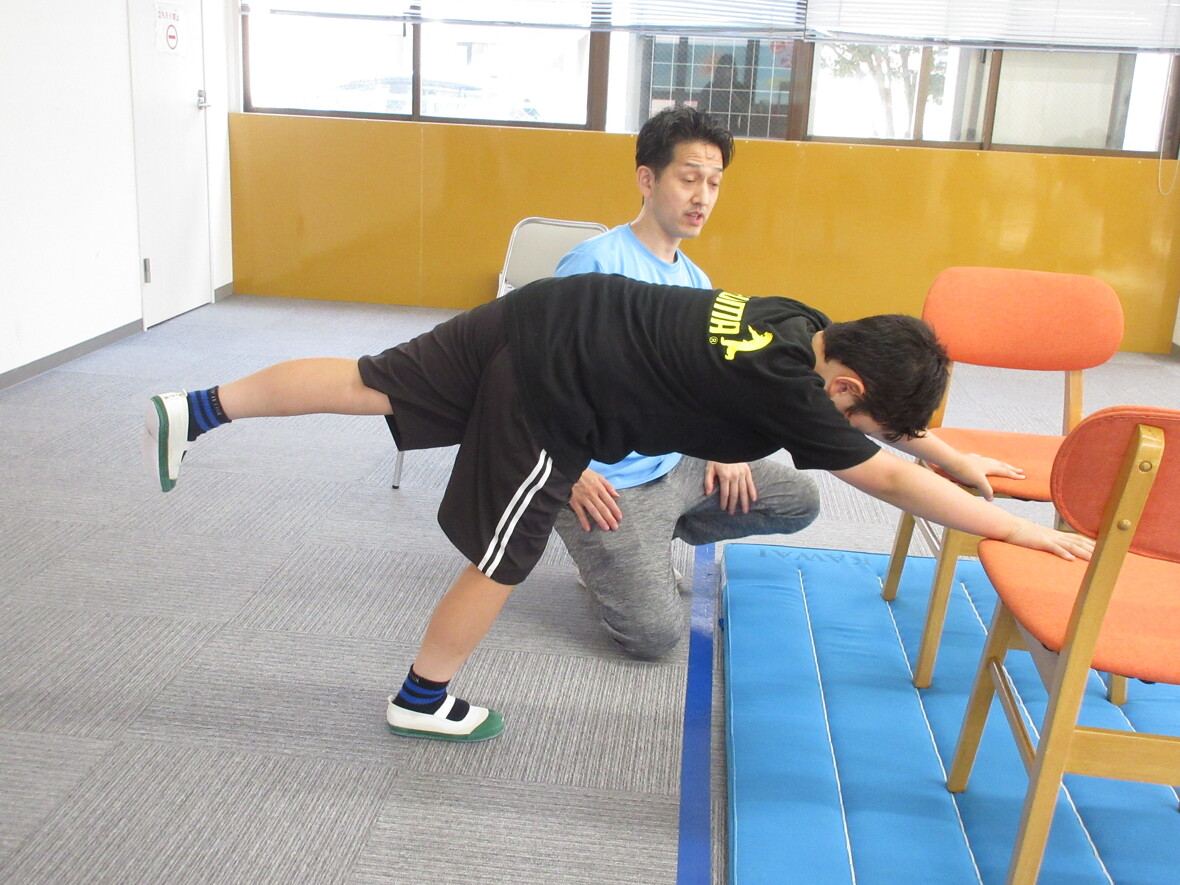 2023年06月21日(水) スタッフブログ エアロビクス 今日は「エアロビクス」のプログラムを行いました! 音楽に合わせて先生の動きを見て体を動かして一生懸命な姿が見られました☆ また、椅子を使って足上げなど体幹のトレーニング、ボールを使っての運動などいろんな運動も行いみんな笑顔で楽しそうでした♪